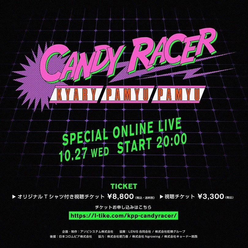 この日限りの演出で届けられる『きゃりーぱみゅぱみゅ 5th Album「キャンディーレーサー」発売記念SPECIAL ONLINE LIVE』は、アルバム発売日当日の10月27日(水)の20:00に配信がスタート。チケット購入者は、11月17日(水)までアーカイブ配信を何度でも楽しむことができる。