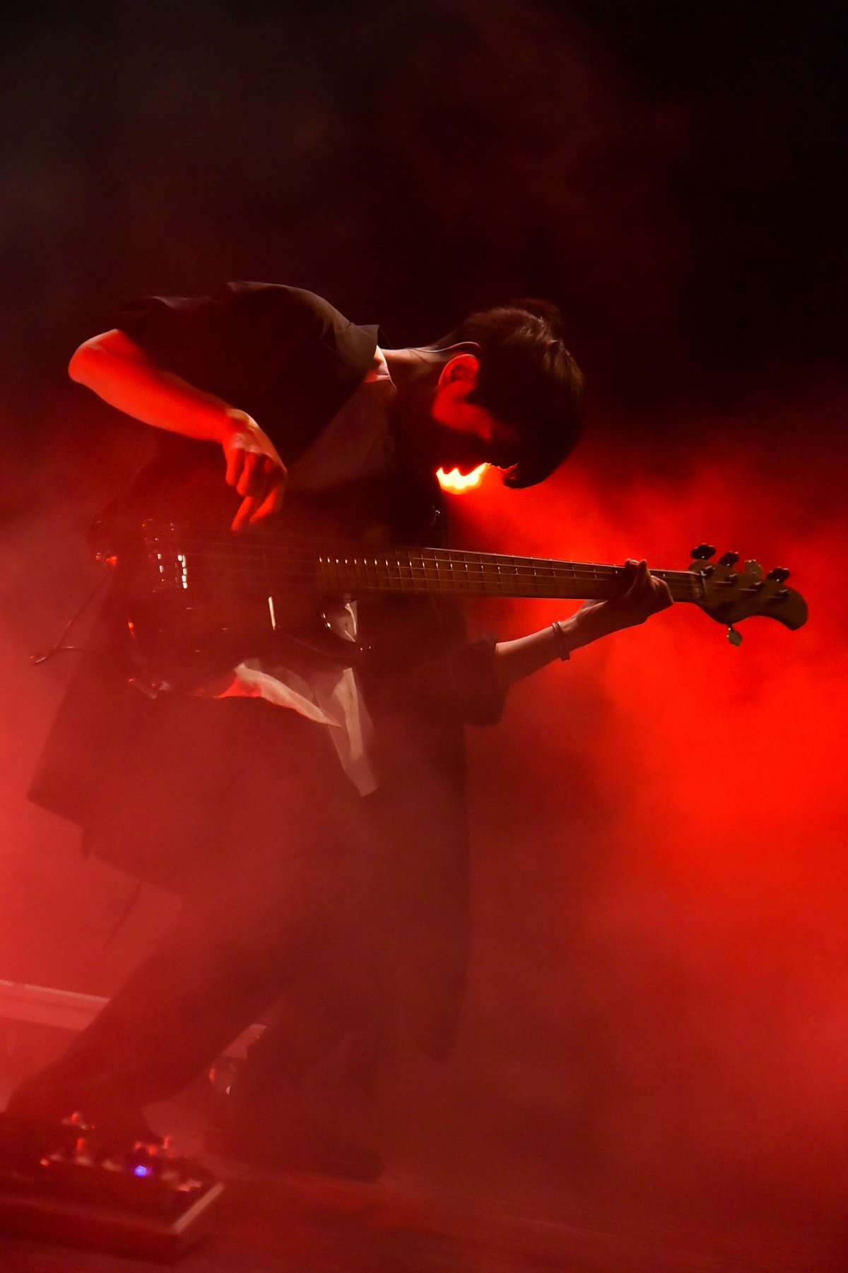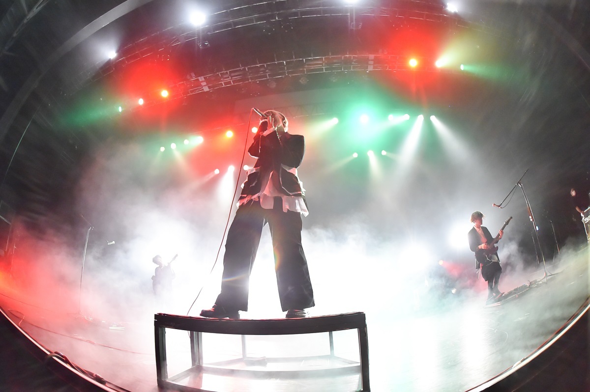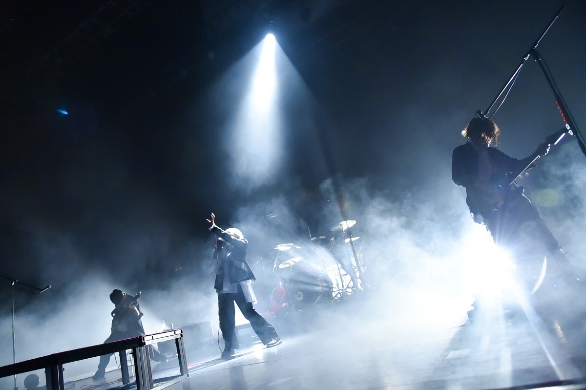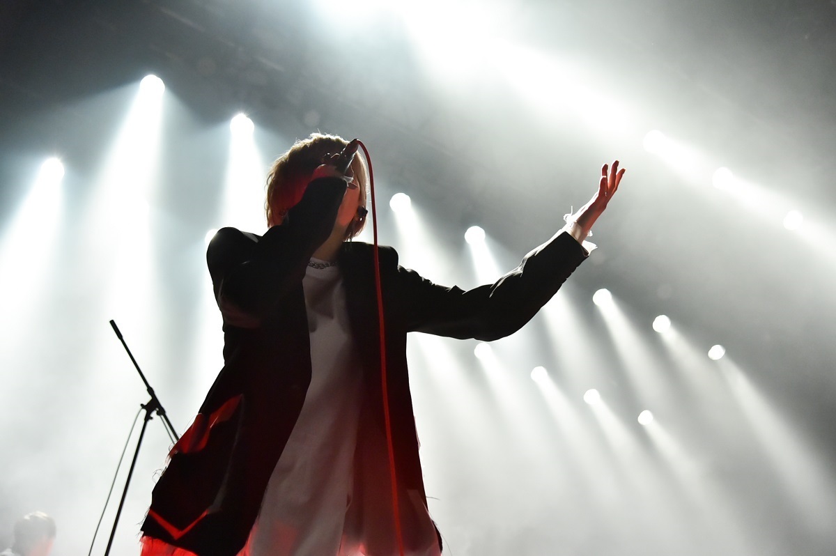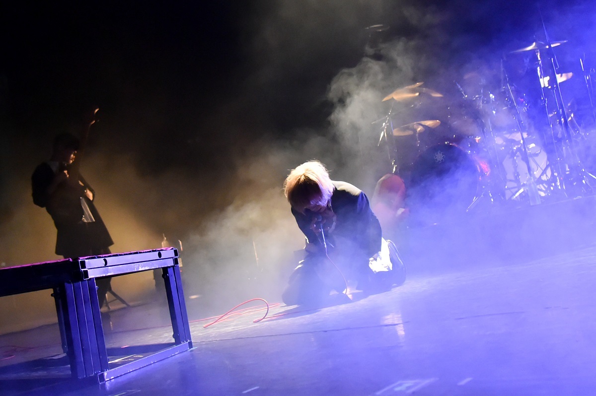 そこに、さらにロッカバラード「セフレ以上恋人未満」を上乗せ。ピアノの弾き語りのなか、ささやくようなか細い声で始まった歌は、バンドがエモーショナルな演奏で高まっていくのと並行してふつふつと激情。その声がオーディエンスの心の奥深くまで入り込み、リスナーが蓋をして塞いでいた感情をこじ開けるよう。そして電話のベルが鳴り響いて「メンヘラ」へ。ここの流れは鳥肌モノ。もう最高の展開といわんばかりに場内は歓喜に包まれ、強烈なヘドバンとともに蓋をしていた感情を外に吐き出していく。takaが真ん中のお立ち台でイントロを弾いて始まった「CinDie」から、スピード感の溢れる「un-speakable」、ジャジーなエッセンスを入れた「正義の歌」を畳み掛け、会場に集まった観客全員になんともいえない深い傷跡と高揚感を残し、メンバーは全員深々と頭を下げ、ステージを去っていった。