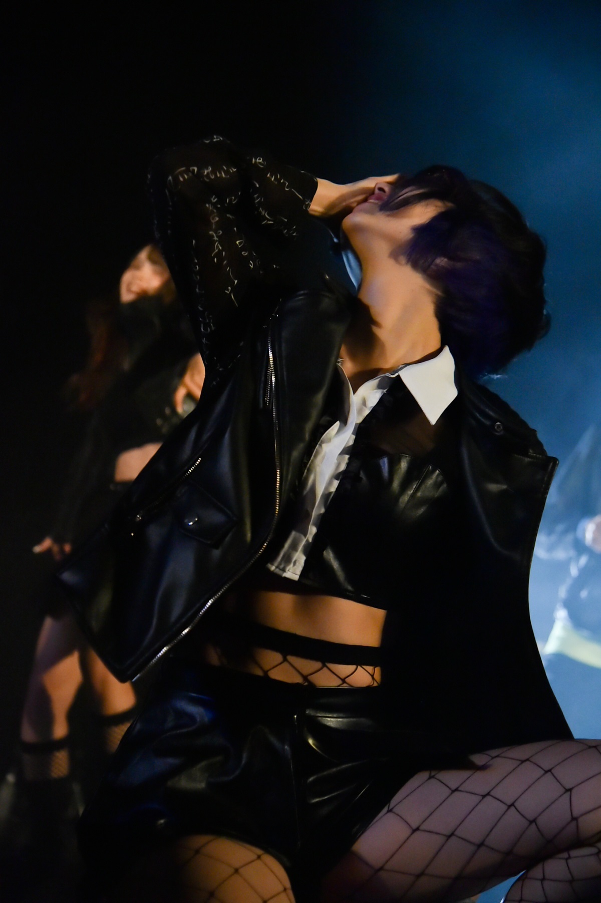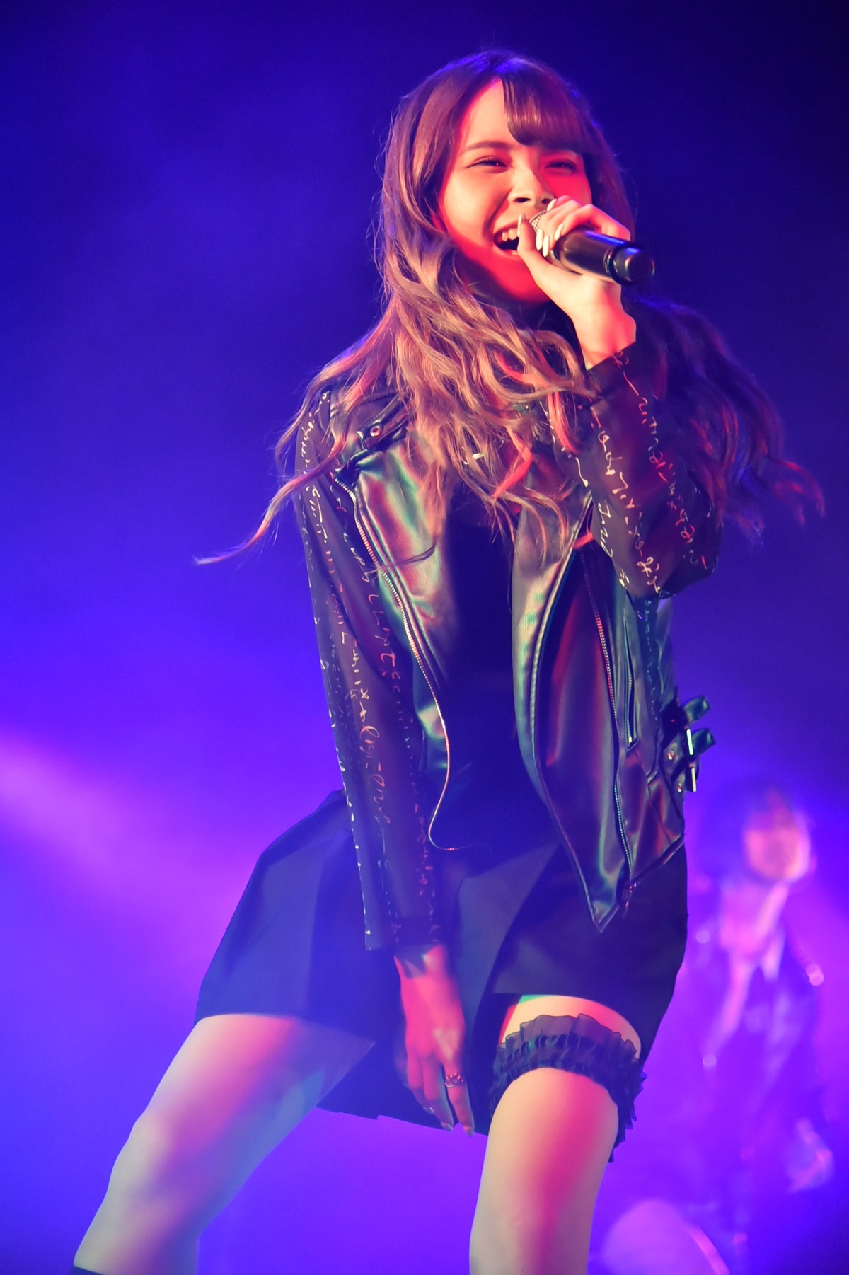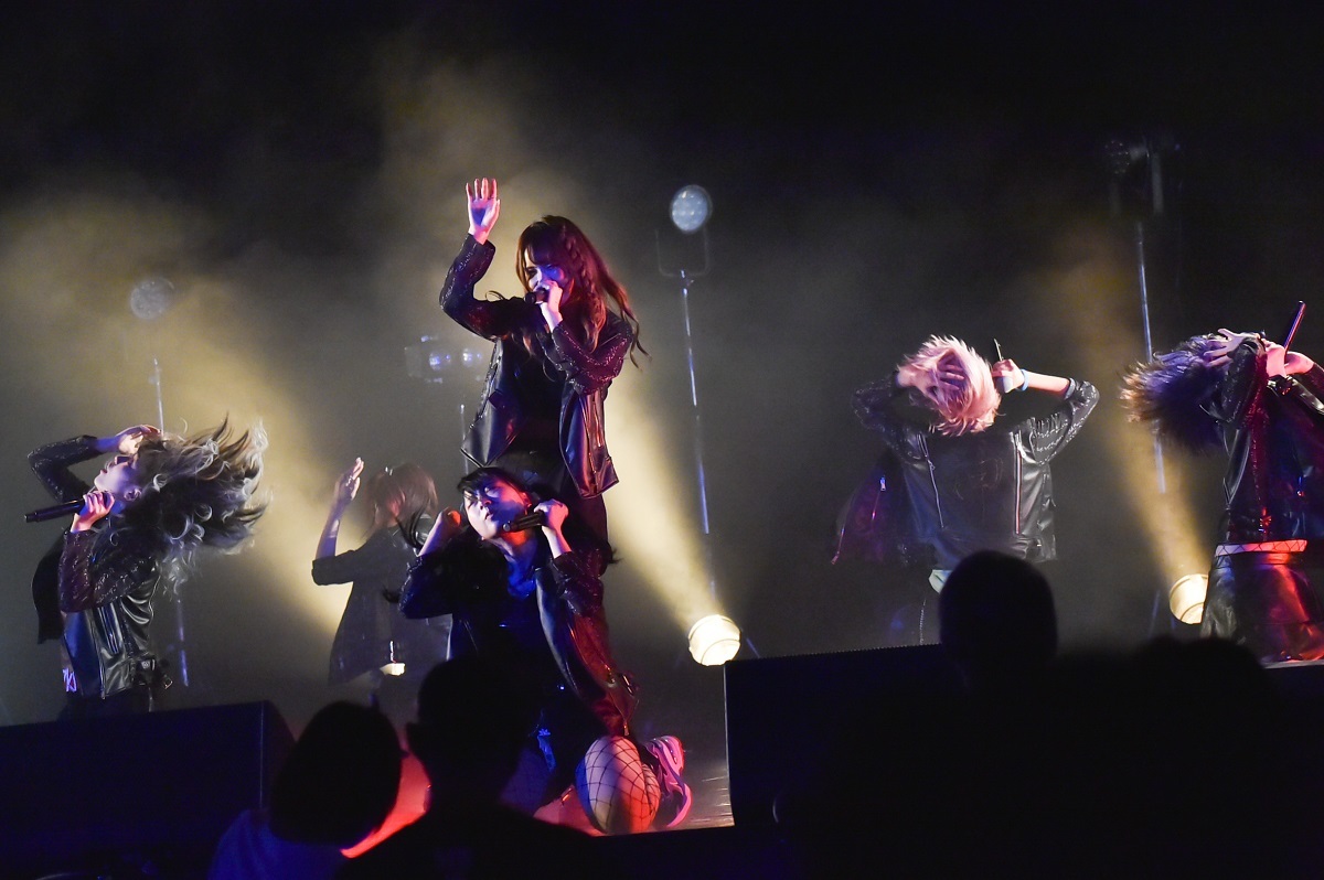 本日のラストを飾るのは、もちろん神激。フロアではさっそく神者(=神激のファンの呼称)たちが推し色のペンライトで客席を盛り上げる。そこに黒い革ジャンでビシッときめた6人が登場。“YO! YO!”“ウチら神激だ”と神激のラップ担当、二日よいこがヒップホップのフロウのような煽りをまずは軽くかまして、そこからなだれ込むようによいこのラップと涙染あまねのシャウトが容赦無く襲いかかって「合法トリップ:ボイルハザード」が始まるという幕開けで、この日の神激はスタートをきった。