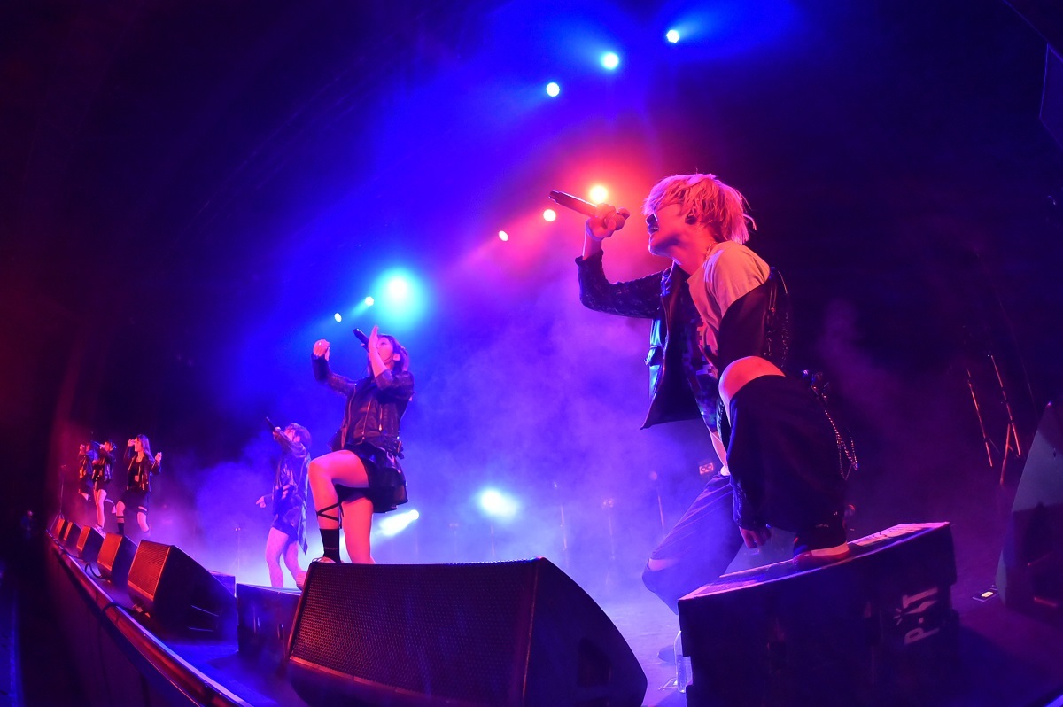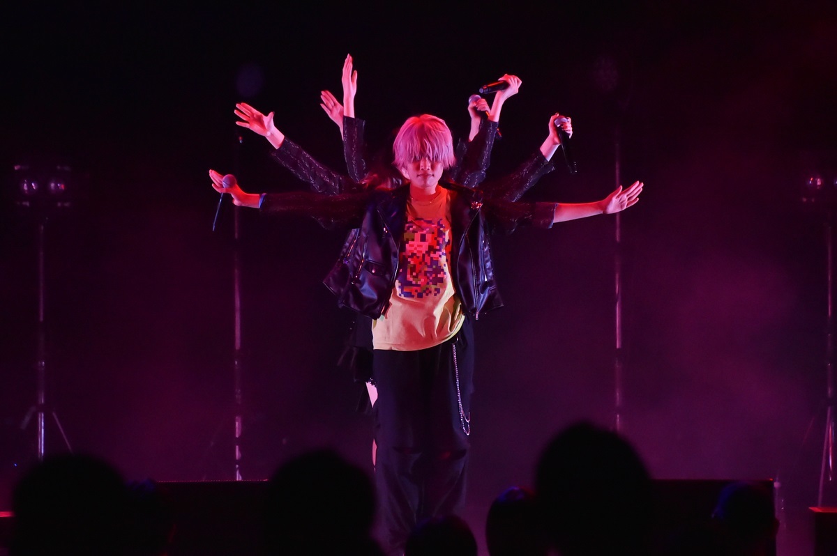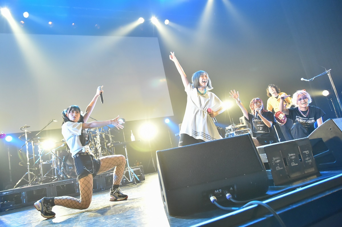 ことのの歌い出しから、ラップとスクリーモが同時進行しながらもJ-POPセンスを感じさせるメランコリックなメロディを主体にしたサマーチューン「青瞬螢詠」を間にはさんで、「BAD CAKE」からライブは大詰め。この曲が始まったときの神者の振りコピの一丸となった盛り上がりもすごかったが、ここではキレキレのよいこのラップにカオティックなあまねのグロウル、TiNAの歌にダンスとメンバーの個性を生かしたアクトが炸裂。