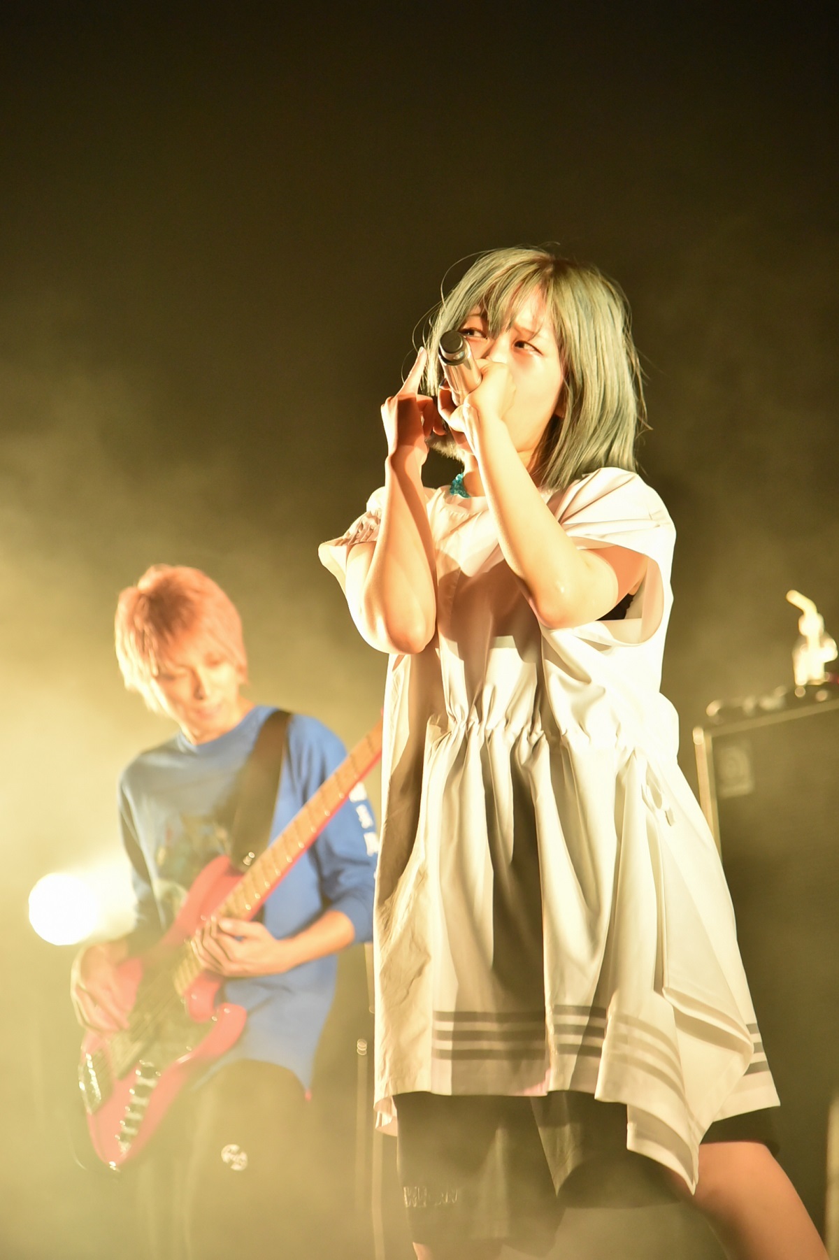 聴こえてきたのは「ノイズ」だった。激しいボーカルは姿を消し、mioは可憐な女の子を思わせるような柔らかくて儚く、美しい歌声でこの曲に寄り添っていく。BメロパートではShunkichiが主旋律を弾いて歌とベースでユニゾンを鳴らすと、曲のメランコリックさはさらに倍増。曲が終わっても、場内には拍手さえ起こらない。独特の緊張感。観ている側は息をするのも忘れて、mioの歌、その残響のなかにポツンと1人だけ取り残されたような気分になる。