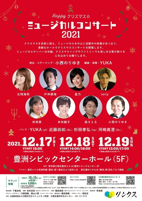 2021年12月17日(金)~19日(日)豊洲シビックセンターホールにて、『Happyクリスマス☆ミュージカルコンサート 2021』の上演が決定した。