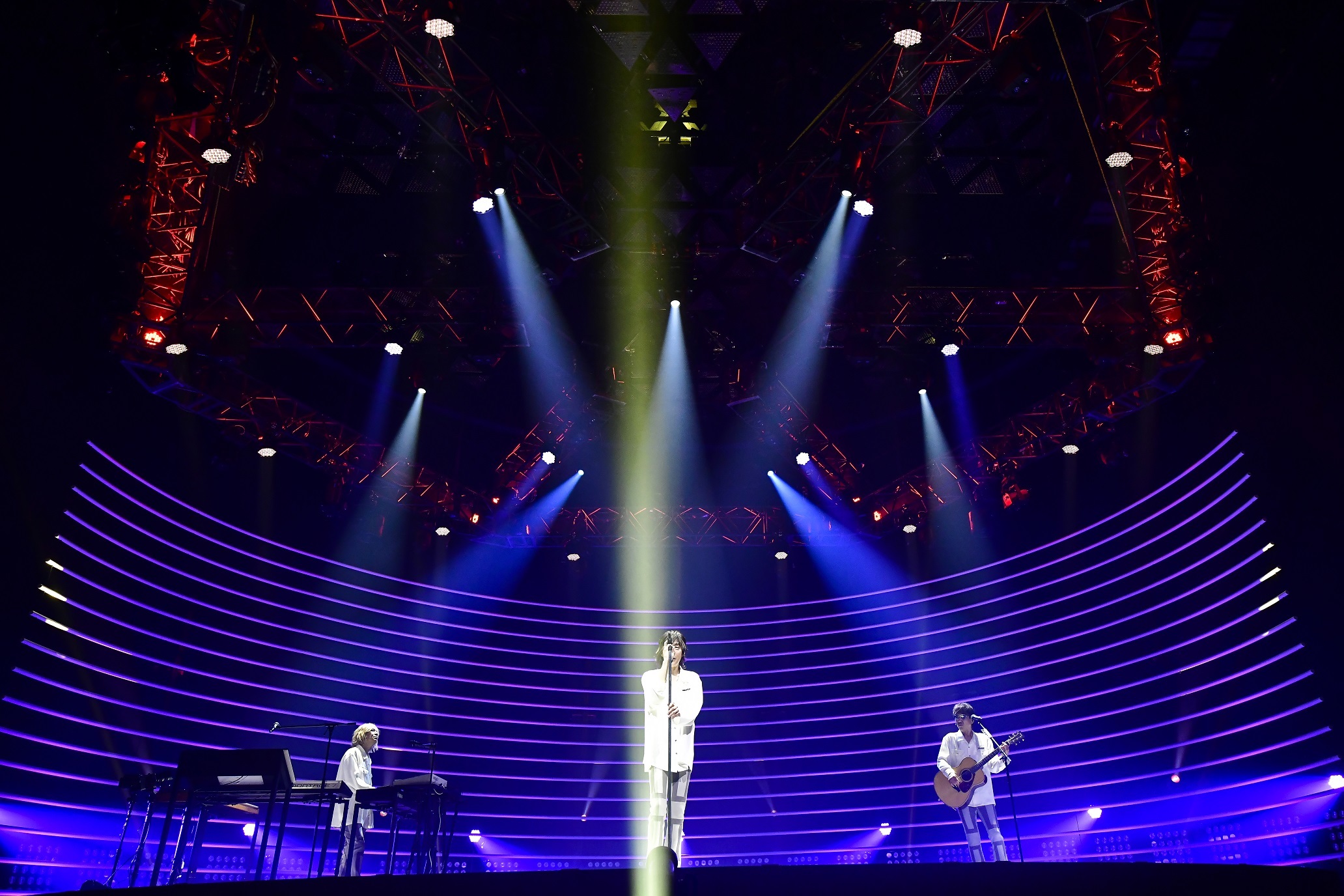 印象的だったのはあの代表曲に2021年の今の息吹きを曲の中に吹き込んで、3人が一体となって歌と演奏を展開するシーンだ。宇都宮がマイクスタンドを回して歌っている。小室が目をつぶって、鍵盤を弾いている。木根が2人のエモーションに呼応して、ダブルネックギターを演奏している。白熱のアンサンブルからは3人の絆が見えてくるようだった。結成から38年。3人の関係性が揺るぎないからこそ、活動すべき時に活動することができるのだろう。