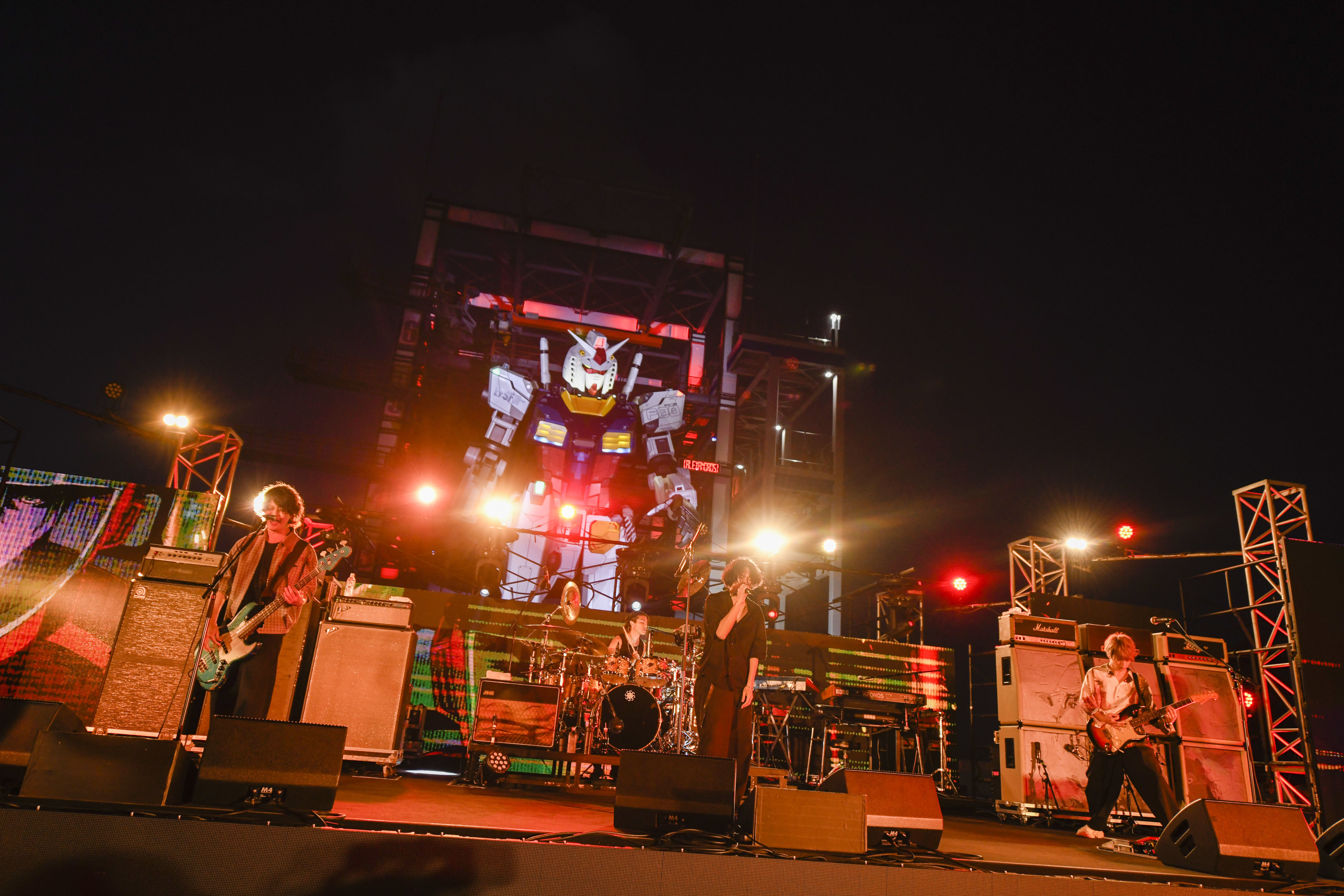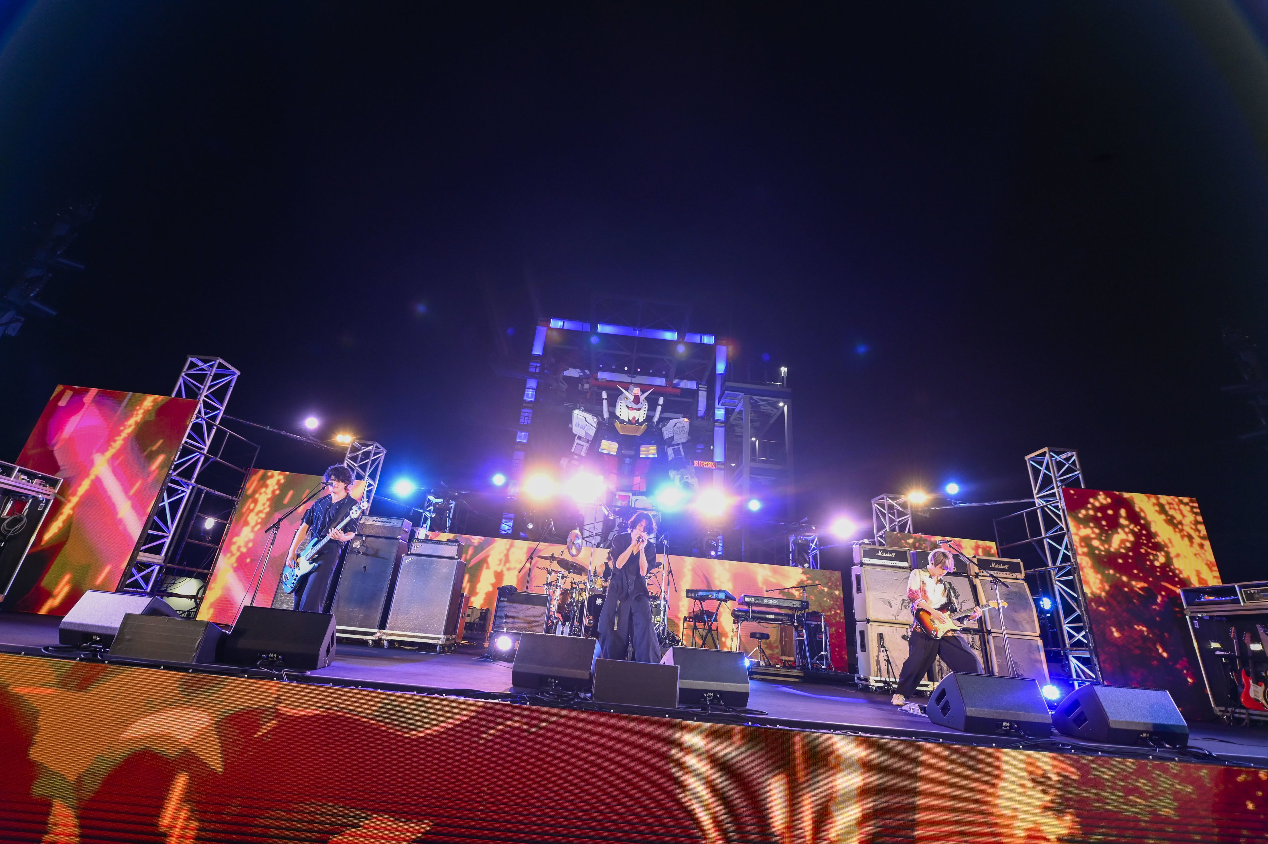 6月11日の公開からちょうど4か月、観客動員108万人、興行収入22億円を記録。10月10日(日)に全国215館の映画館にて本編の上映に加え、主題歌「閃光」がストリーミングとYouTube総再生回数で5,000万再生を超え、楽曲としてもロングヒットを記録している[Alexandros]からガンダムファンへ、一夜限りのスペシャルLIVE付き上映イベントを実施いたしました。18mの”動くガンダム”がそびえる横浜・山下ふ頭で期間限定開催中の「GUNDAM FACTORY YOKOHAMA」にてライブを行い、全国各地の映画館へ向けて生中継でお届け。この日は、ロングヒット記念として4曲の特別セットリストを披露。