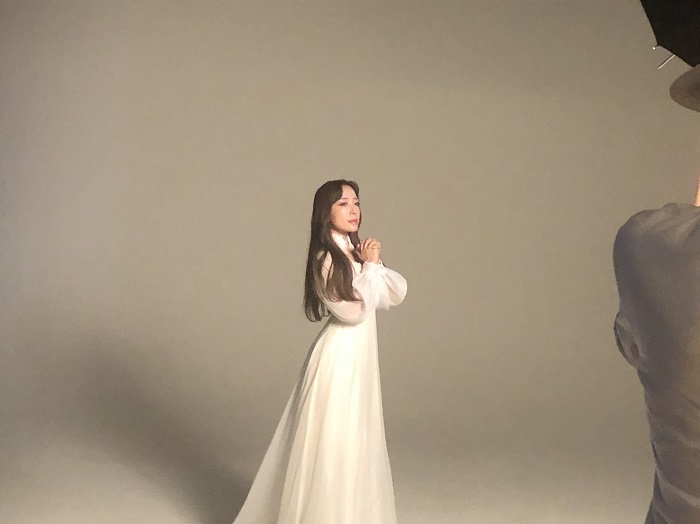 手元が映るカットでは急遽ネイルを塗り重ねる配慮も。目を伏せた祈りのポーズ、慈愛の表情に少しずつ凛々しさや強さを乗せていく感情のグラデーション、ダンスするかのような躍動的な一瞬など、平原自身の表現のバリエーションも豊富。派手な動きではないが思わず場を圧倒するような立ち姿の撮影ではカメラマンから「Beautiful!」と感嘆の声も上がった。