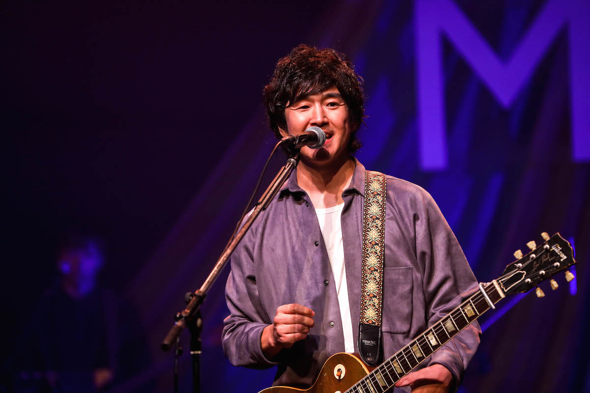 1曲目にロックンロールの「空にまいあがれ」を選び、Mt. FUJIMAKIバンドとともにスタジオの温度を一気に上げたYO-KINGと桜井秀俊の2人組、真心ブラザーズの熱演に「(お客さんのいない)オンラインだからって関係ない感じですね!」と藤巻が快哉を叫ぶ。すると、「バンドのみなさんがいい! みずみずしい!」とYO-KINGもゴキゲンだ。いきなり最高のグルーブが生まれた。