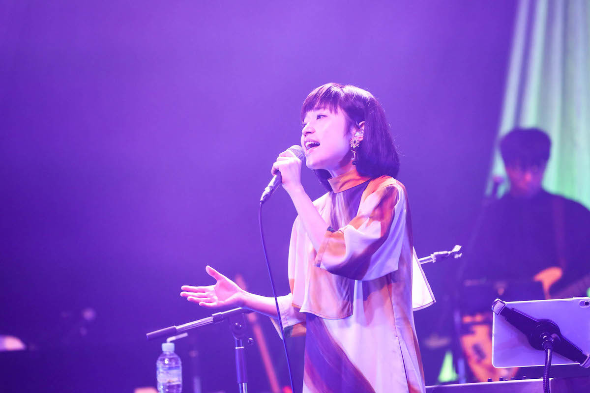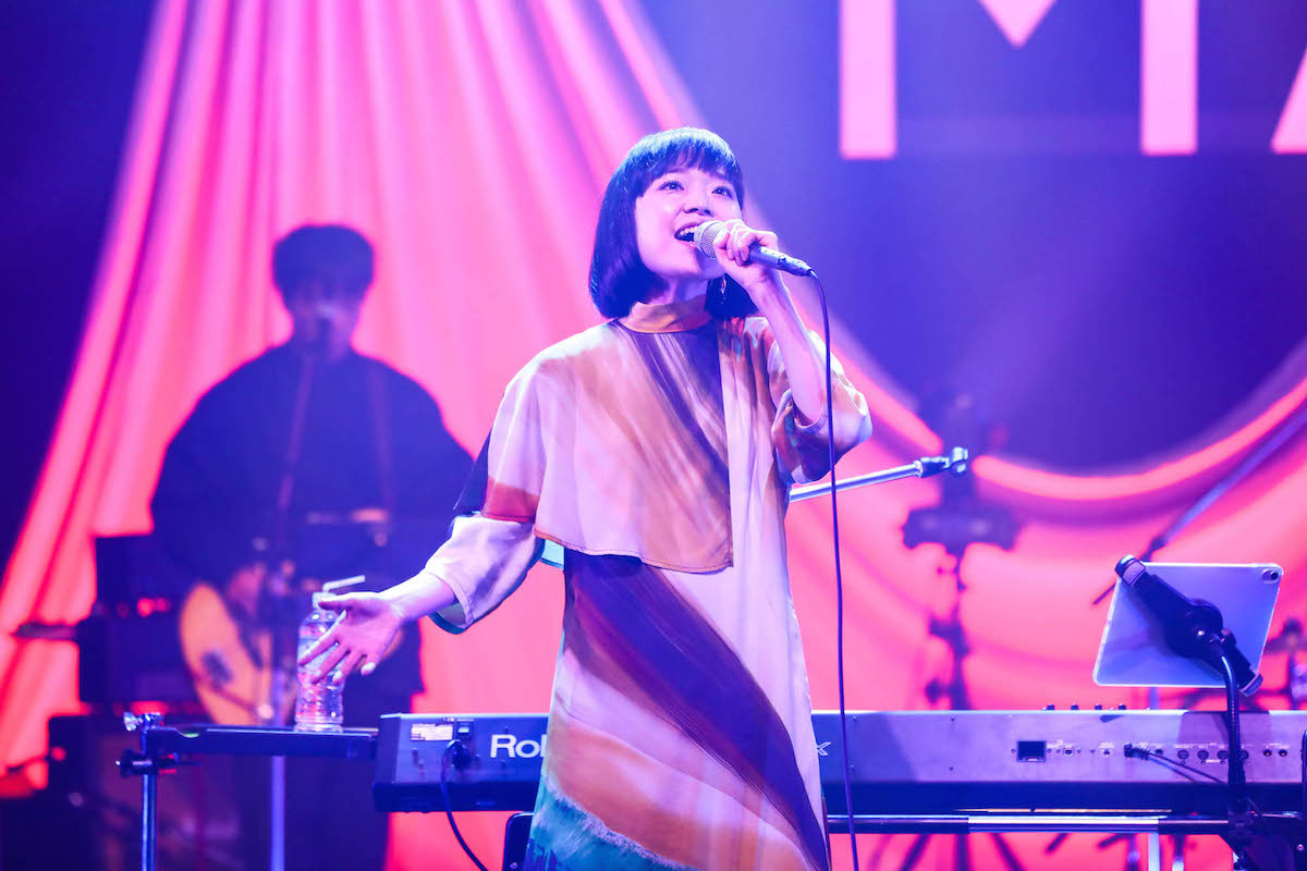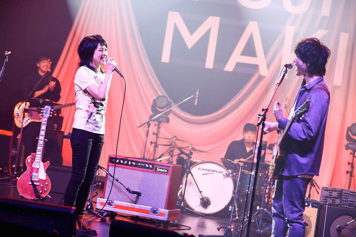 「最初のゲストをお迎えしたいと思います」と藤巻に迎えられた川嶋あいのステージは、どんな時でも口にすれば元気になれる呪文のような言葉を、跳ねるリズムに乗せたポップ・ソング「へっちゃら」で軽やかにスタート。Mt. FUJIMAKIバンドの一員として、演奏に参加した藤巻が川嶋の歌にハーモニーを重ねる。その後、藤巻が楽曲にまつわるエピソードを聞き出しながら、川嶋は3曲を披露。一番の聴きどころは、昨年、川嶋から「一緒に曲を作らせてもらえませんか?」と藤巻に声をかけ、“作曲:藤巻、作詞:川嶋”というコラボレーションで今年3月にリリースされた「どうにか今日まで生きてきた feat.藤巻亮太」だったはず。
