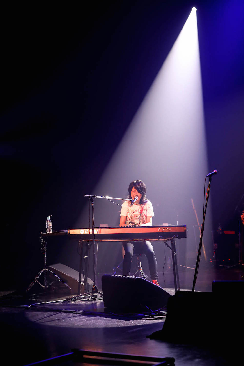 そして、この日、ハウス・バンドを務めた信頼できるメンバー――桑原あい(ピアノ)、御供信弘(ベース)、よっちこと河村吉宏(ドラムス)、曽我淳一(キーボード兼バンマス)、真壁陽平(ギター)を紹介してから演奏したのが、一昨年『Mt. FUJIMAKI 2019』で初披露した「オウエン歌」。「若い力を音楽で応援したい」という思いとともに藤巻の母校・笛吹高校の生徒たちとの交流から生まれた楽曲が今回、「今、がんばっている人たちに届けたい」という思いを込めたことで、この曲を聴く人たちすべての未来を肯定する曲に生まれ変わった。