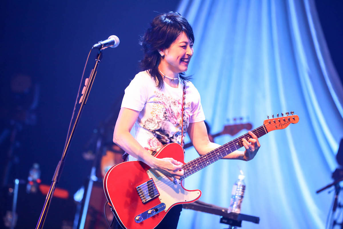 意表を突くようにプリンセスプリンセス時代の「ジュリアン」を、ピアノによる弾き語りでオープニングに持ってきたのは岸谷香だ。今回、セットリストについて自らさまざまなアイディアを提案したとのこと。オンライン開催を決意した藤巻を後押ししたかったのだと思うが、藤巻もそんな岸谷に「お会いするたび、前向きなパワーをいただいています!」と全幅の信頼を寄せている。