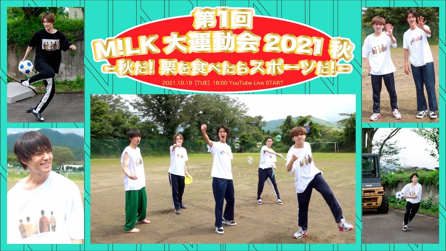 今回のYouTubeライブでは、リレーやドッジボールなど5種目を予定しており、メンバーによる真剣勝負を生配信。M!LKのメンバー5人に加え、夏の全国ツアー『M!LK BEST L!VE TOUR 〜Thank you for your smile〜』でオープニングアクトを務めたM!DANCERS from EBiDAN NEXTのメンバー5人も集結。さらに、MBSラジオ『オレたちやってみるく!』でM!LKと共にレギュラー番組を務めた経験もあるコロコロチキチキペッパーズがMCとして参加する。『第1回M!LK大運動会2021秋−秋だ!栗を食べたらスポーツだ!−』は、M!LKオフィシャルYouTubeチャンネルにて無料で視聴することができる。