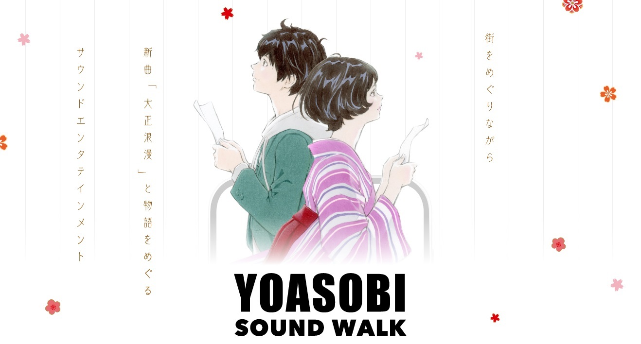 また、9月に配信リリースされた楽曲「大正浪漫」およびその同名原作小説の世界を実際に歩きながら体験できる企画『YOASOBI SOUND WALK』が、東京では10月20日(水)より、札幌・名古屋・大阪・福岡では10月29日(金)よりスタートすることが決定した。この企画のために書き起こされた脚本で、主人公の時翔を森永悠希、ヒロインの千代子を永瀬莉子が演じる。アプリ『Locatone(TM)』を使用して誰でも楽しめる新体験となっている。