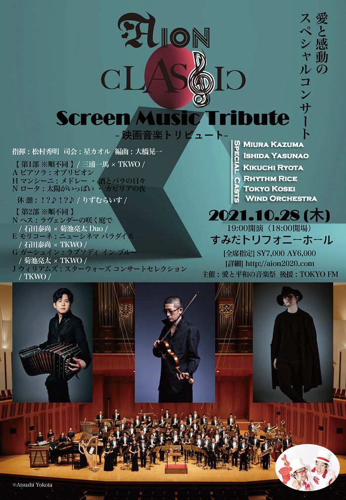 2021年10月28日(木)すみだトリフォニーホールにて開催される『AION CLASSIC 〜愛と感動のスペシャルコンサート〜』。このたび、会場と共に、オンライン生配信によるハイブリッド開催が決定した。