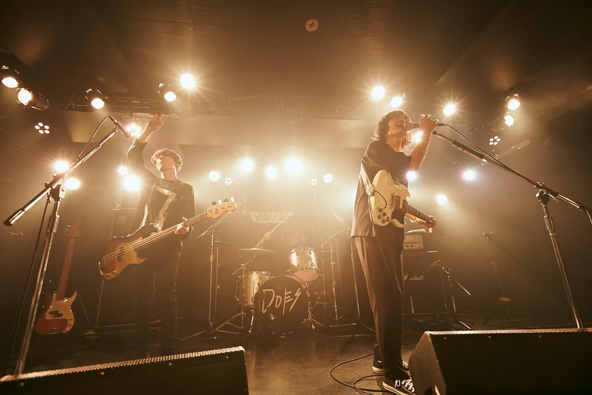 ダブルアンコールにも応え、この日のライブを終えた彼ら。新型コロナウィルス感染拡大の影響により、2020年元旦の再始動宣言の際に告知された、新代田FEVERでの復活ライブは中止となってしまったが、約1年半越しに同じ新代田FEVERで、バンドの復活を喜ぶファンに直接挨拶し、見事リベンジを果たした。ここから3人は、大事な人たちとの再会の旅へ出発する。さぁ、ここから共に、DOESが迎えた新たな季節を楽しもうではないか。