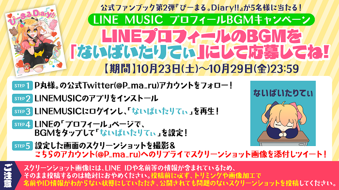 また10月23日(土)~10月29日(金)の期間、抽選で公式ファンブック第2弾『ぴーまる。Diary!!』が当たるLINE MUSICプロフィールBGMキャンペーンが開催されているので、チェックしてみよう。