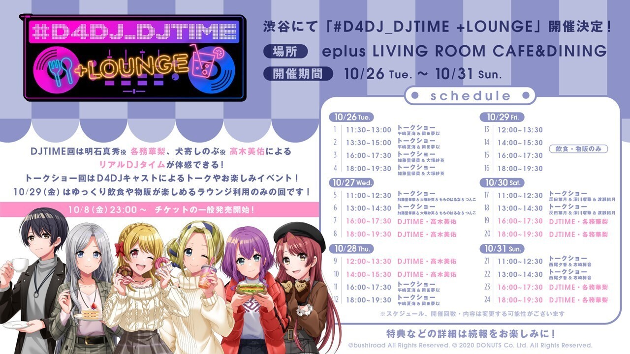 また、現在eplus LIVING ROOM CAFE&DININGでは『#D4DJ_DJTIME +LOUNGE』も連日開催されている。『D4DJ』キャストによるトークショーやDJが楽しめるプログラムとなっているためこちらもチェックしてもらいたい。