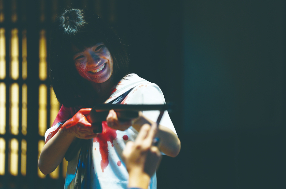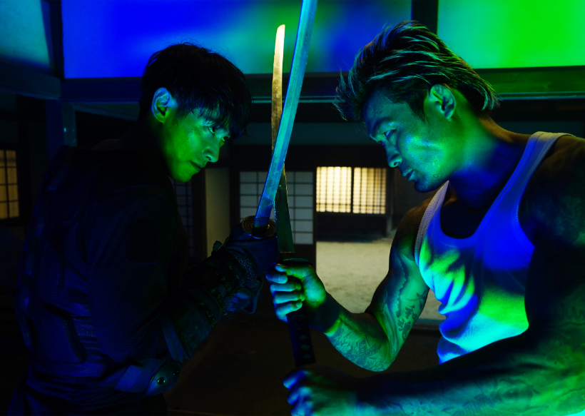 解禁された場面写真では、観光客にショーを見せる忍者キャストとして働く立石(ディーン・フジオカ)が日本人の“純度”を図るという試薬P(ure)J(apanese)キットで受けた「100%」の判定に高揚感を覚え、アユミとの出会いをきっかけに暴力のリミットを開放していく姿など、様々な場面が切り取られている。また、血だらけのセーラー服に身を包んで笑いながらショットガンを持つアユミや、ヤクザと結託する県議・黒崎(別所哲也)や、長山組に所属する陣内(坂口征夫)が登場するビジュアルも公開されている。