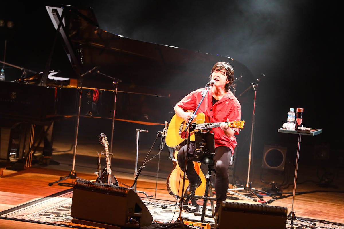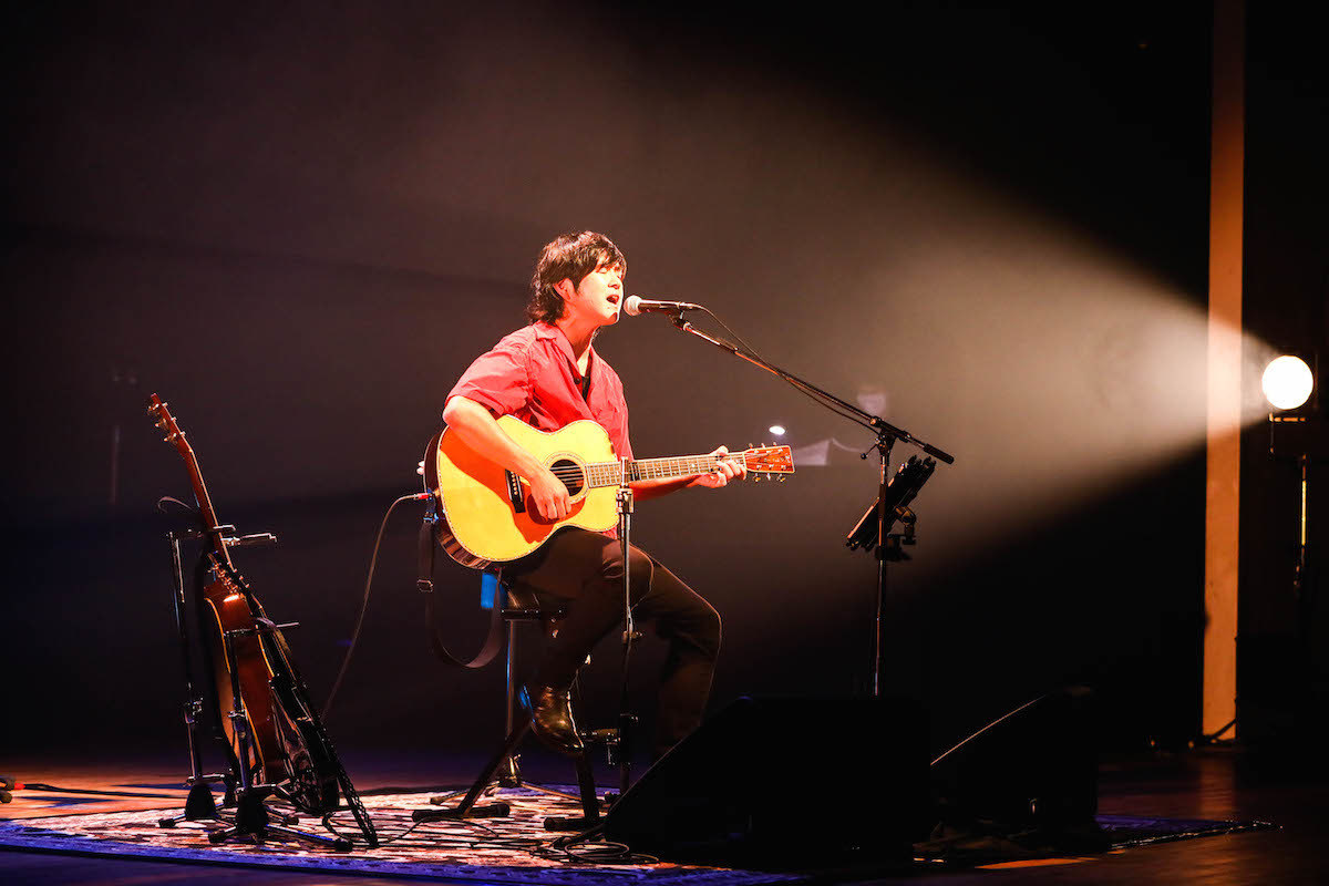 ツアー初日ということで演奏曲や曲順の詳細は極力伏せるが、ツアータイトルとなっている「まほろば」をはじめソロとして発表した曲、レミオロメン時代の曲、さらにはカバー曲まで、時代もテイストも様々な楽曲を披露する構成に。たとえば「僕らの街」が中部横断自動車道の開通を受けて生まれたことなど、それぞれの曲の背景や思い入れなどを語るMCパートが多めだったのも、ホールでの着席スタイルで観るアコースティック・ライブとよく噛み合っていた。決して饒舌というキャラクターではない藤巻だが、むしろそういう人柄がにじむような柔和な語り口でじんわりと場の空気を作り上げ、時折笑いも誘いながら目の前の観客たちとのコミュニケーションを楽しむ様子が印象的だ。