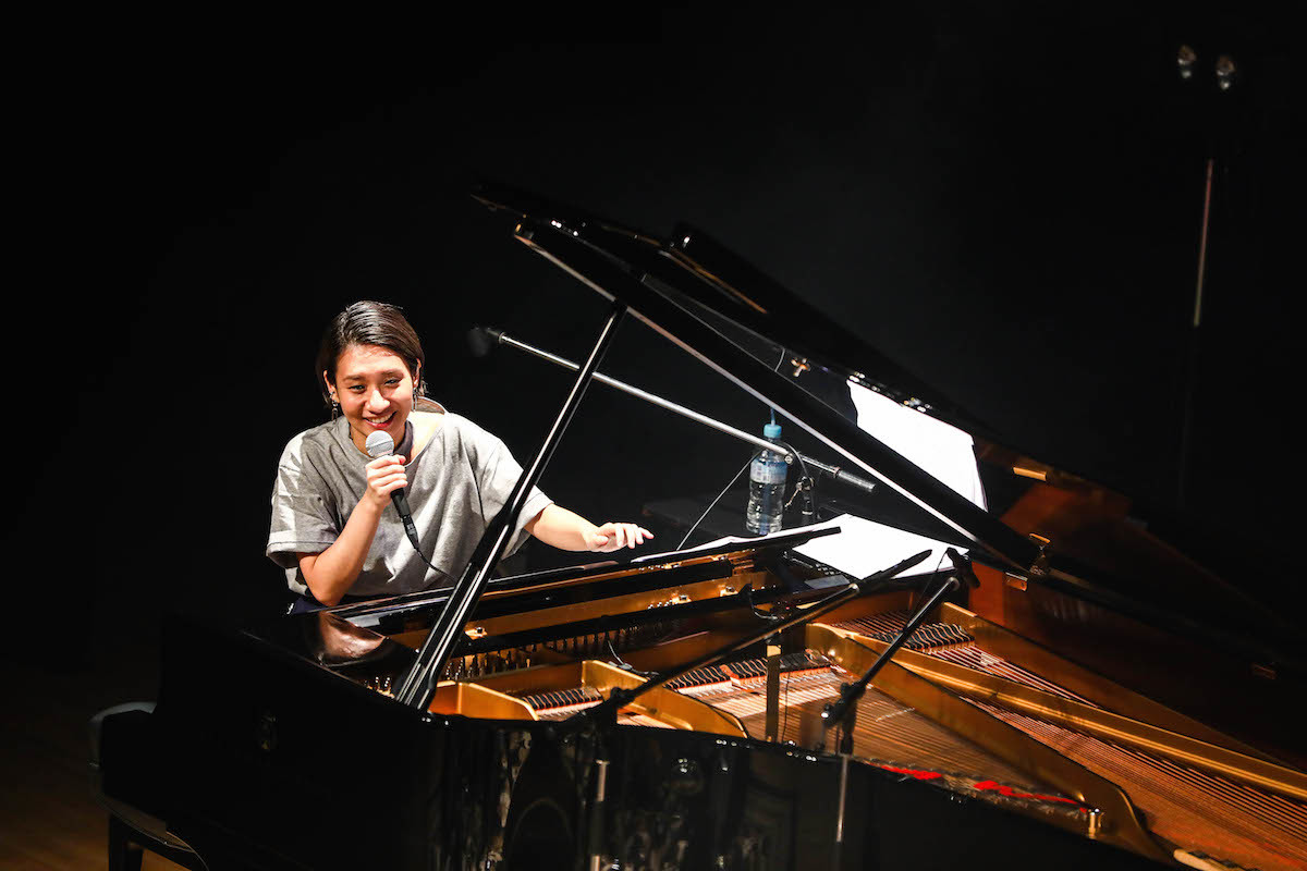特別感ということで言えば、桑原あいによるピアノのソロ演奏も素晴らしい。藤巻がその場で出すお題を受けてのインプロビゼーションのスタイルで、この日のキーワードは「はじまりの一歩」だった。期待や不安など複数の感情が織り混ざるテーマに対し、ドラマティックな抑揚と精緻な技巧で応えてみせた桑原。おそらく公演ごとに全く違った演奏となるであろうこのコーナーでは、普段のロックやポップスのライブではなかなか体験できない、息を呑むような数分間を味わえることだろう。