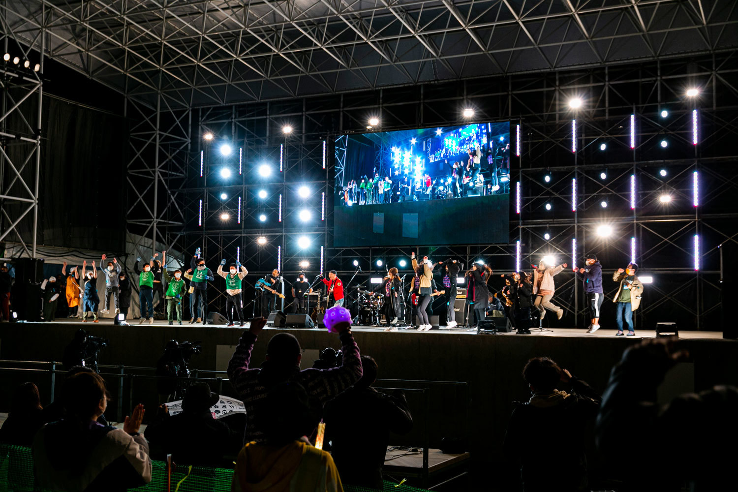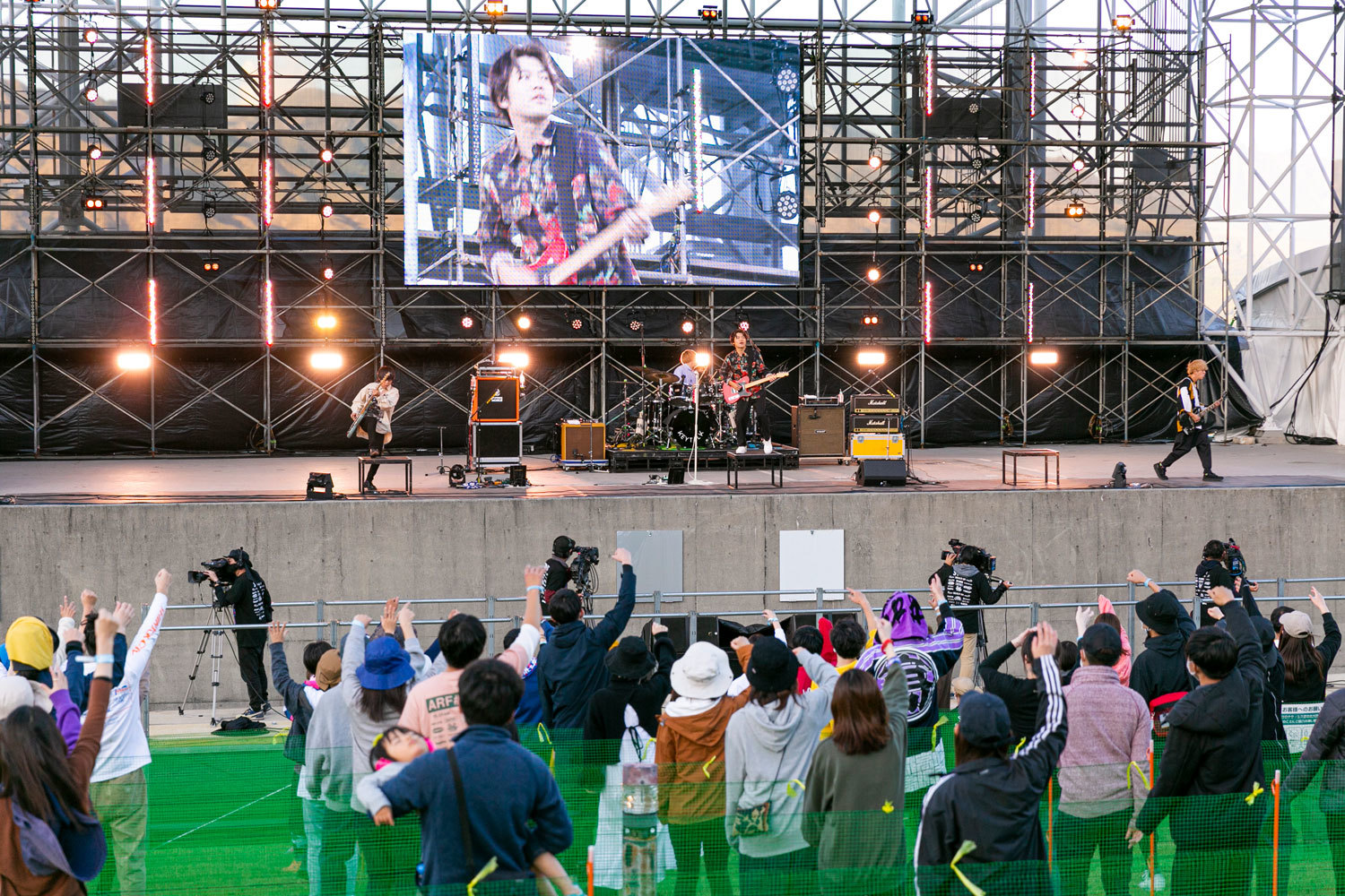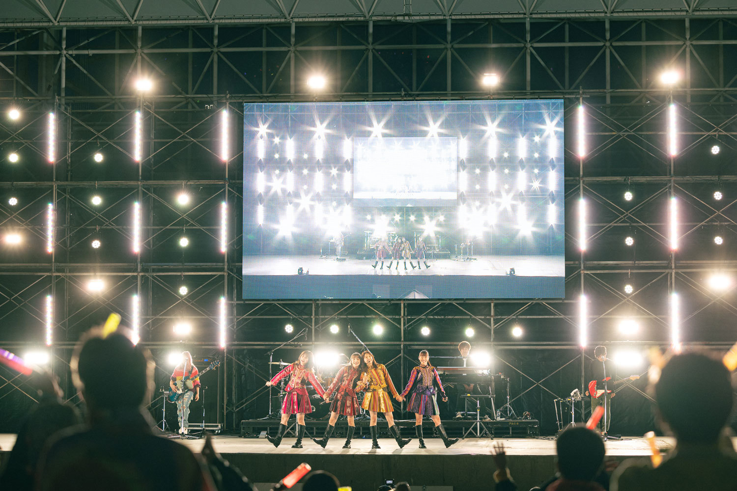 すでに日が落ちて冷気が増してきた客席に4色のペンライトが揺れる。そして、最後に歌われた曲は、この日最大のサプライズだった。