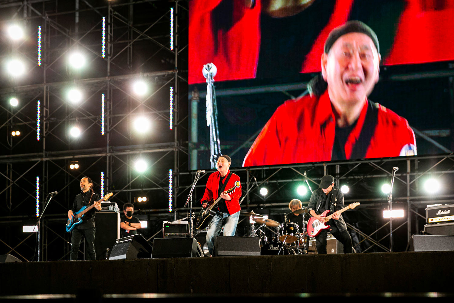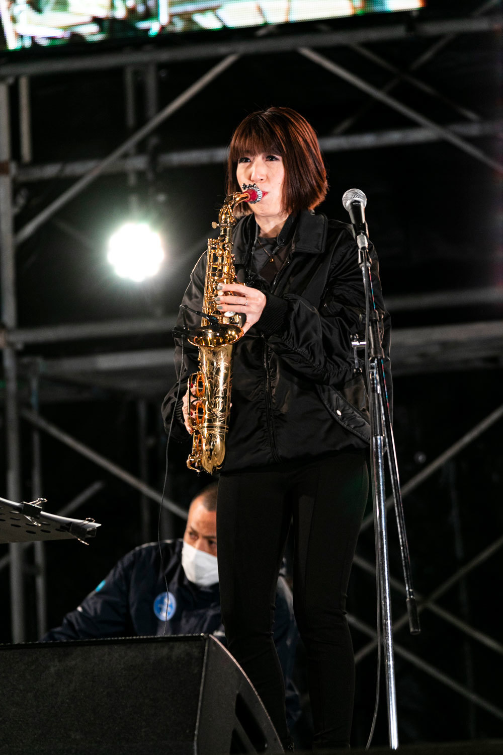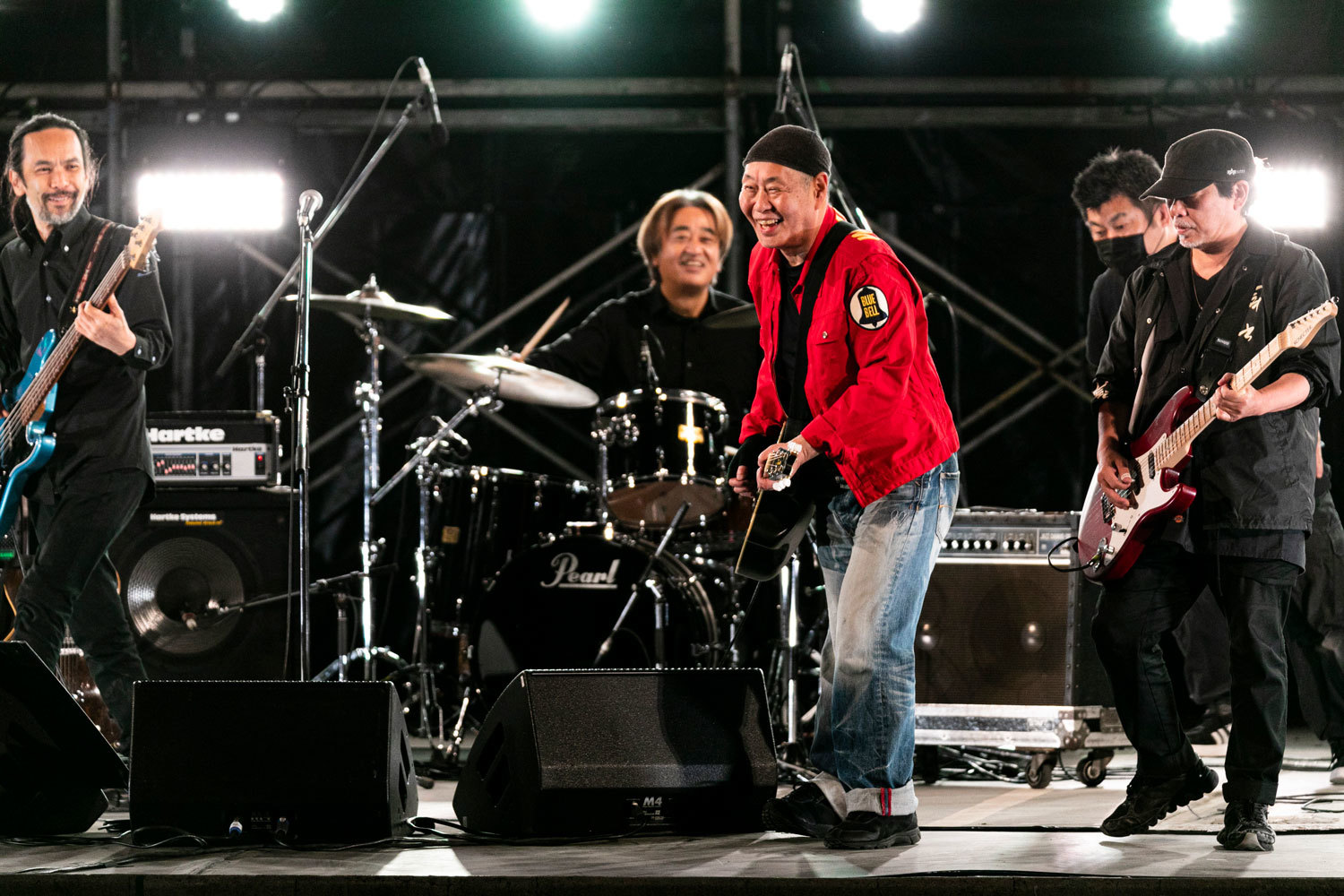 いつものように声を出し合ってコール&レスポンスが出来ない中でどんなライブをするのか。渡邊裕美(B)、藤沼伸一G)、板谷達也(D)にサックスの小林香織を加えた泉谷しげるバンドのダンスビートを強調した厚めのアレンジは冷気を吹き飛ばす踊れるフィナーレを出現させた。