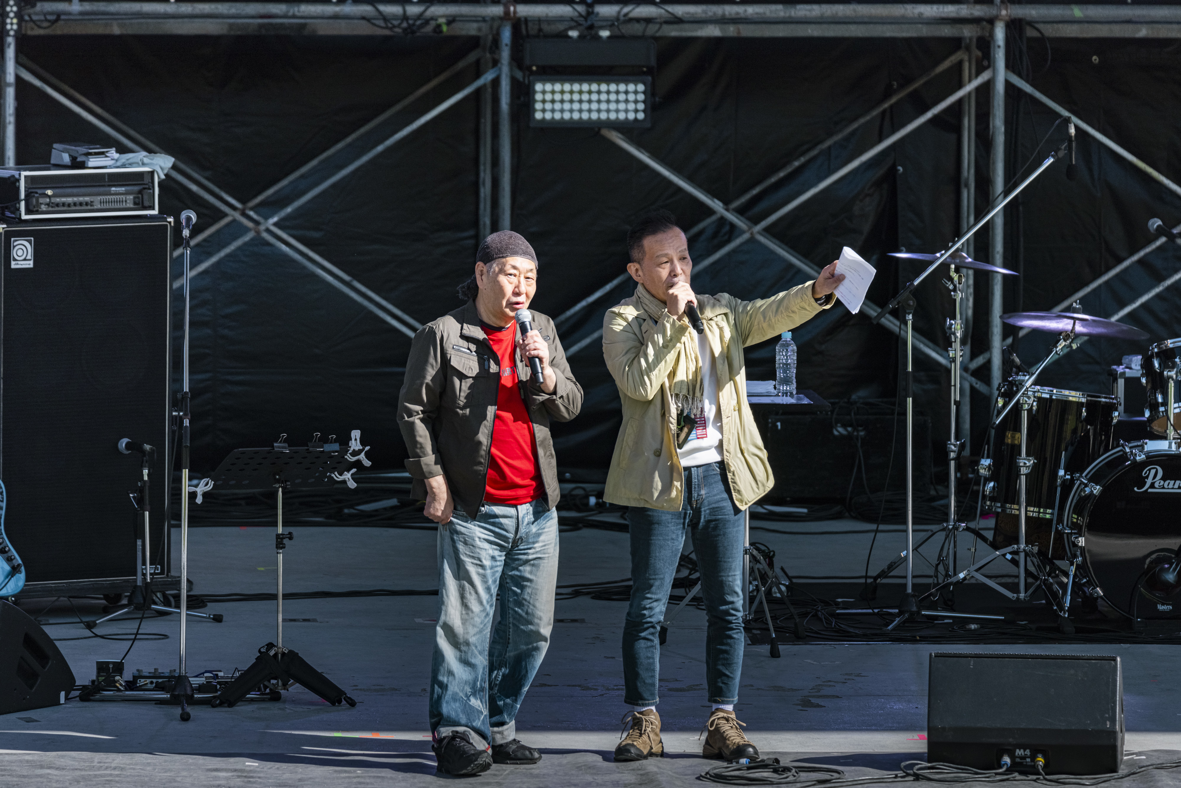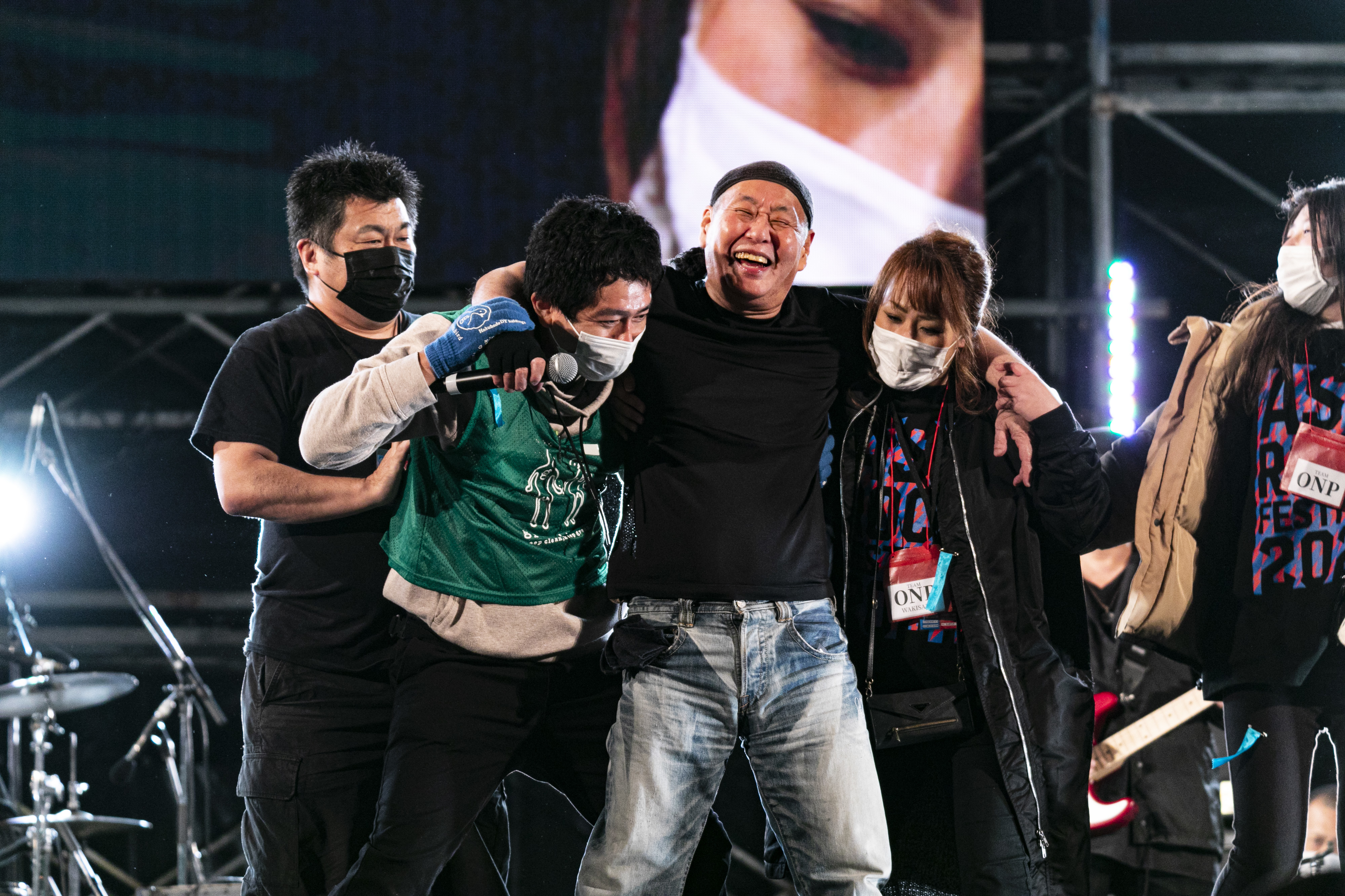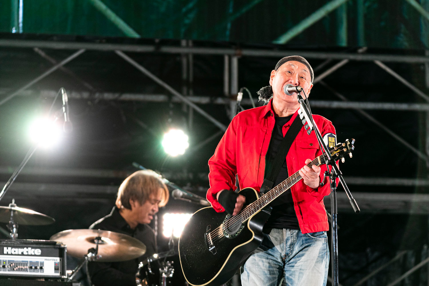 いつものように声を出し合ってコール&レスポンスが出来ない中でどんなライブをするのか。渡邊裕美(B)、藤沼伸一G)、板谷達也(D)にサックスの小林香織を加えた泉谷しげるバンドのダンスビートを強調した厚めのアレンジは冷気を吹き飛ばす踊れるフィナーレを出現させた。