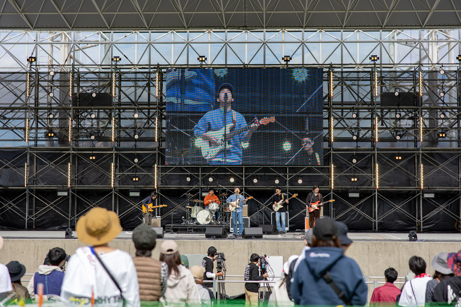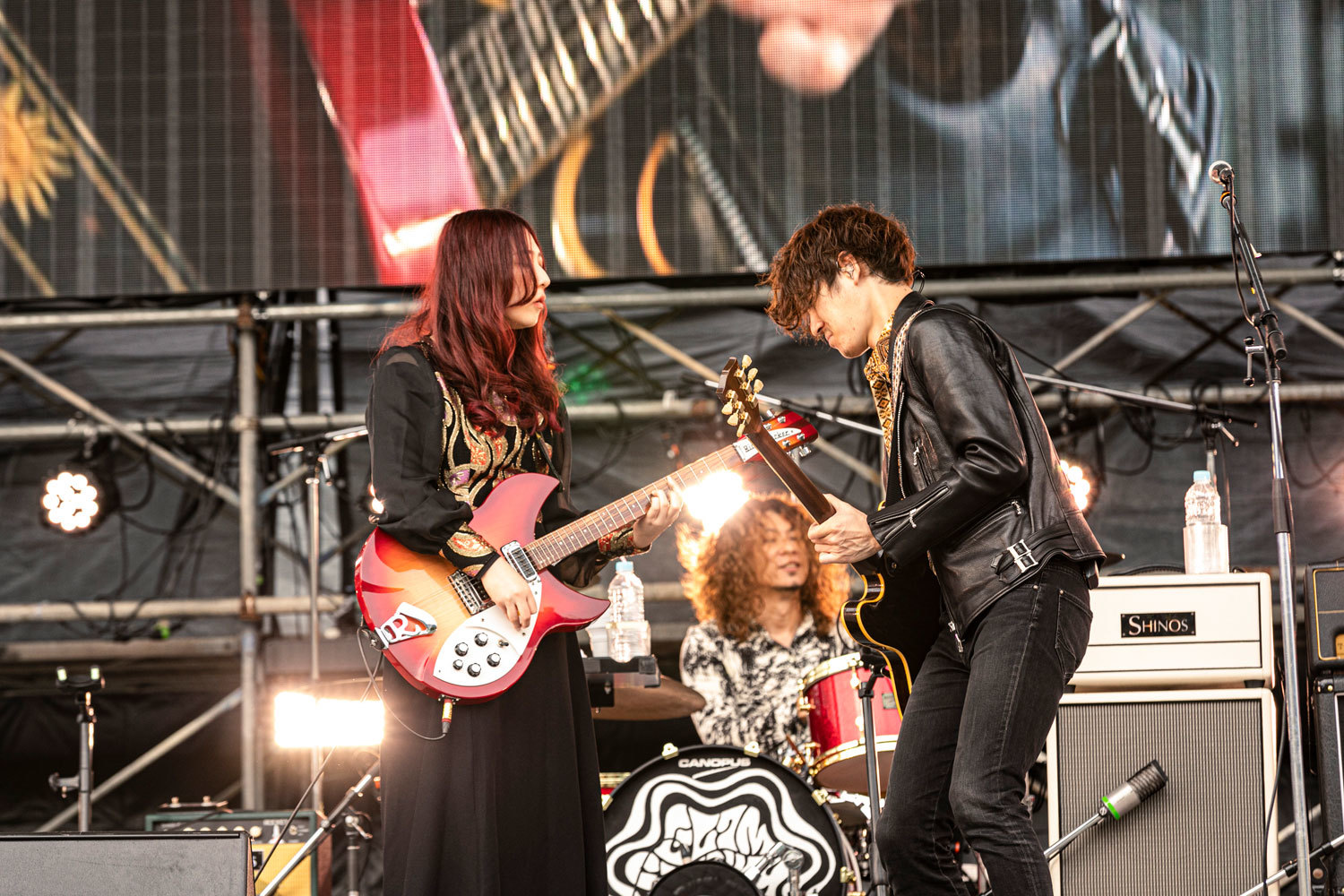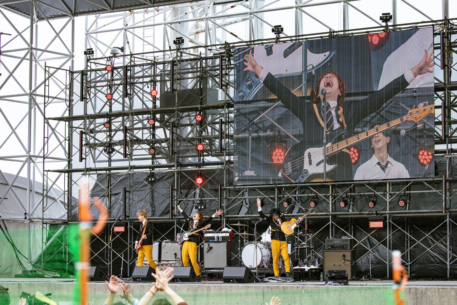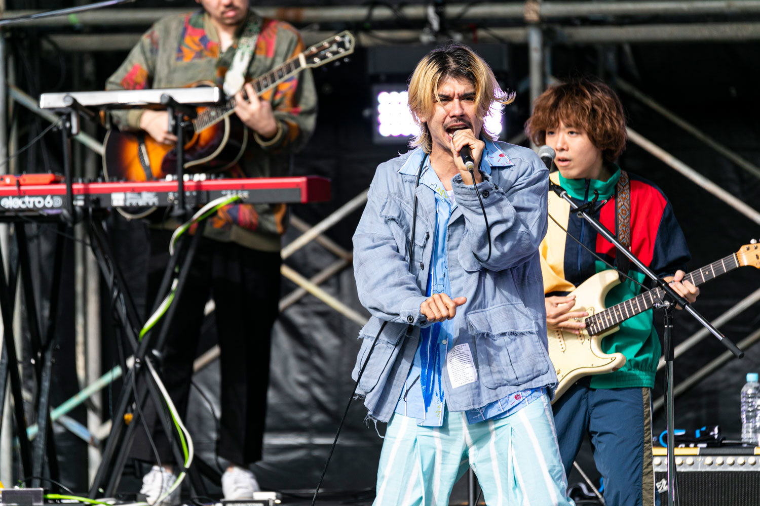 こんなに平和なロックフェスがあっただろうか。そんな空気は今年、スチャダラパーをフィーチャリングして「ネバやんとスチャやんfeat.スチャダラパー」を発売したnever young beachで一段と強くなった。はっぴいえんどがカントリーとやっているような風通しの良さとヴォーカルの安部勇磨ののどかで温度感のある歌声。彼は「5か月ぶりのライブ」だと言った。スチャダラパーを呼び込んでの「ネバやんとスチャやん」は、当然ながらネバやんバージョン。日差しのあたった芝生のような心地よさ。客席の後方と横側の「キャンプエリア」に張られたテントが良く似合った。