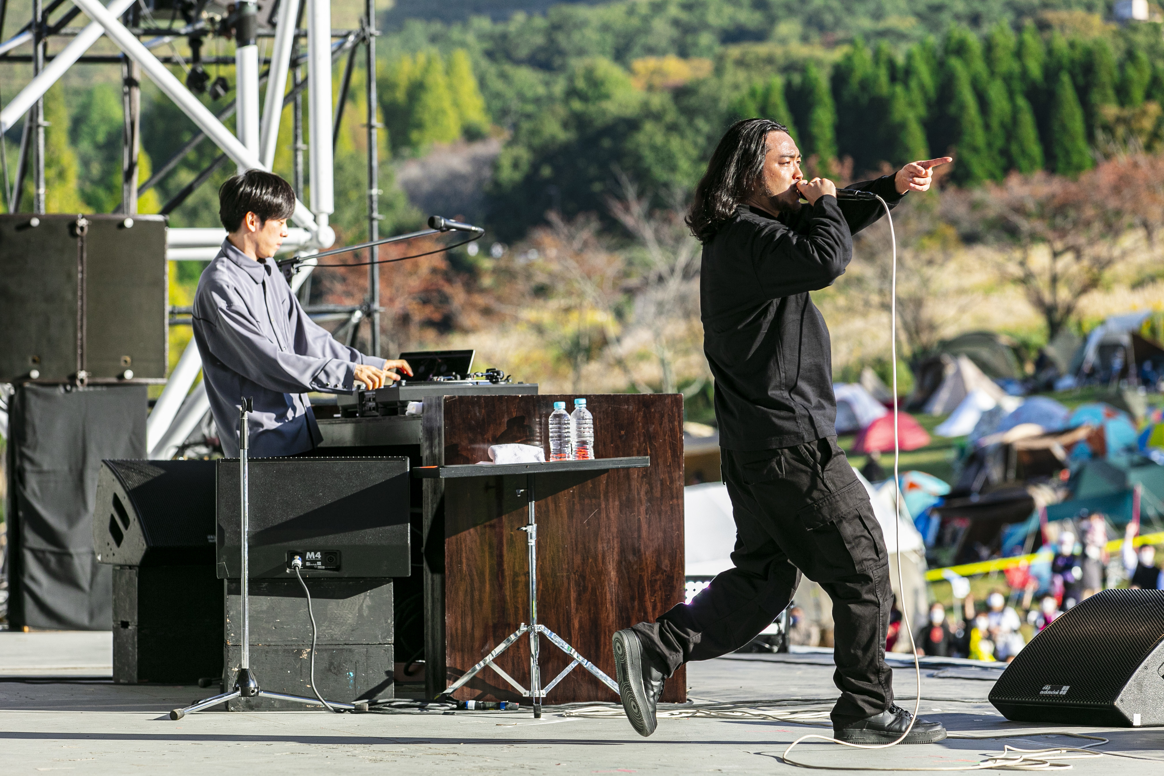 ジャンルを超えた出演者それぞれの継承。オープニングのサイプレス上野、スチャダラパーへのリスペクトを九日したのが今、最も勢いのあるヒップホップユニット、Creepy Nutsだ。スピード感豊かな言葉の切れとベースを強調したリズムトラックのグルーブ。関西弁が人懐っこさを感じさせる。客席で踊っていた初老の男性は、「こういう音楽は初めてだけど」と言い64歳だと笑っていた。