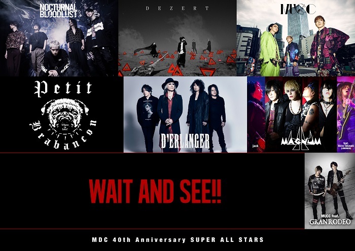 まず、第1弾出演アーティストとして発表されたのは、44MAGNUM feat.高崎晃(LOUDNESS)-JACK IN THE BOX SPECIAL VERSION-、D'ERLANGER (CIPHER/SEELA/Tetsu) with GUEST、MUCC feat.GRANRODEO、DEZERT、NOCTURNAL BLOODLUST、Petit Brabancon、そしてMDC 40th Anniversary SUPER ALL STARSとなる。