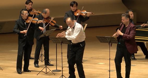 Vol.8は、2台、3台のピアノ特集で、5月に開催する予定でしたが、コロナ禍のために8月に延期しました。その8月のコンサートは、演奏家にとっても久しぶりのリアルでのコンサートでした。Vol.9は、バロック特集。Vol.8までに、あらかたのジャンルを網羅していたのですが、“時代”は取り上げていませんでした。バロックといえばバッハ。私自身はバッハが好きなのですが、企画段階では「眠くなる」という意見もあって(笑)。その地味な部分をどうカバーできるかと考えて、ヴァイオリンの石田泰尚さんと石田組のみなさん、そしてフルートの工藤重典さん、クラリネットのコハーンさんにも参加していただき、バッハを含めた「バロック」をテーマにしました。当時から石田さんは、硬派な見た目に対してロマンティックな演奏をされると、そのギャップが話題でしたから、今回は「メンズバロック」をキャッチコピーに、とことんカッコよくとお願いしました。