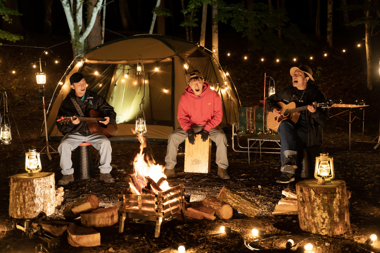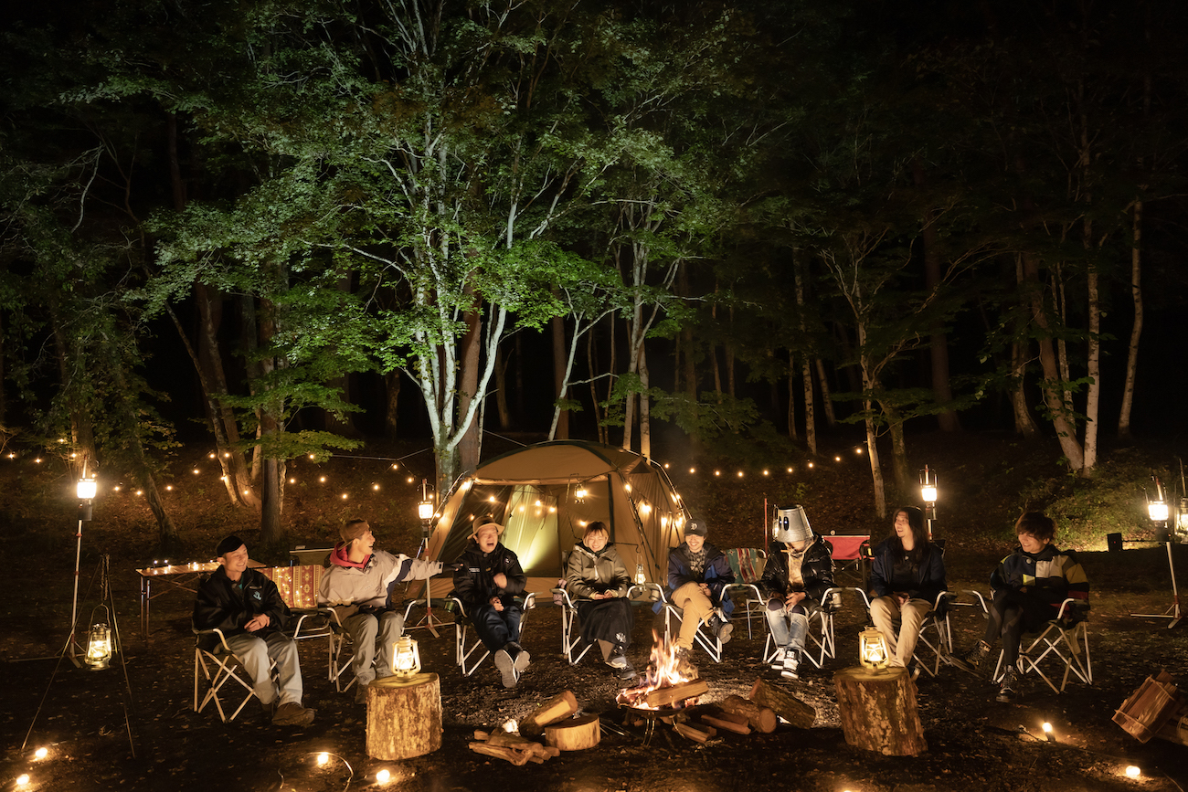 第2回目のゲストアーティストはTOTALFAT × BIGMAMA。学生時代から約20年にわたり親交があり、今年8月にコラボ楽曲「WE RUN ON FAITH」をリリースした両バンドが全員でキャンプ。これまでを振り返るトーク、そしてテント張りや火起こしなどに挑戦し、最後は大自然のアンビエントな音を含むアコースティックライブを披露している。