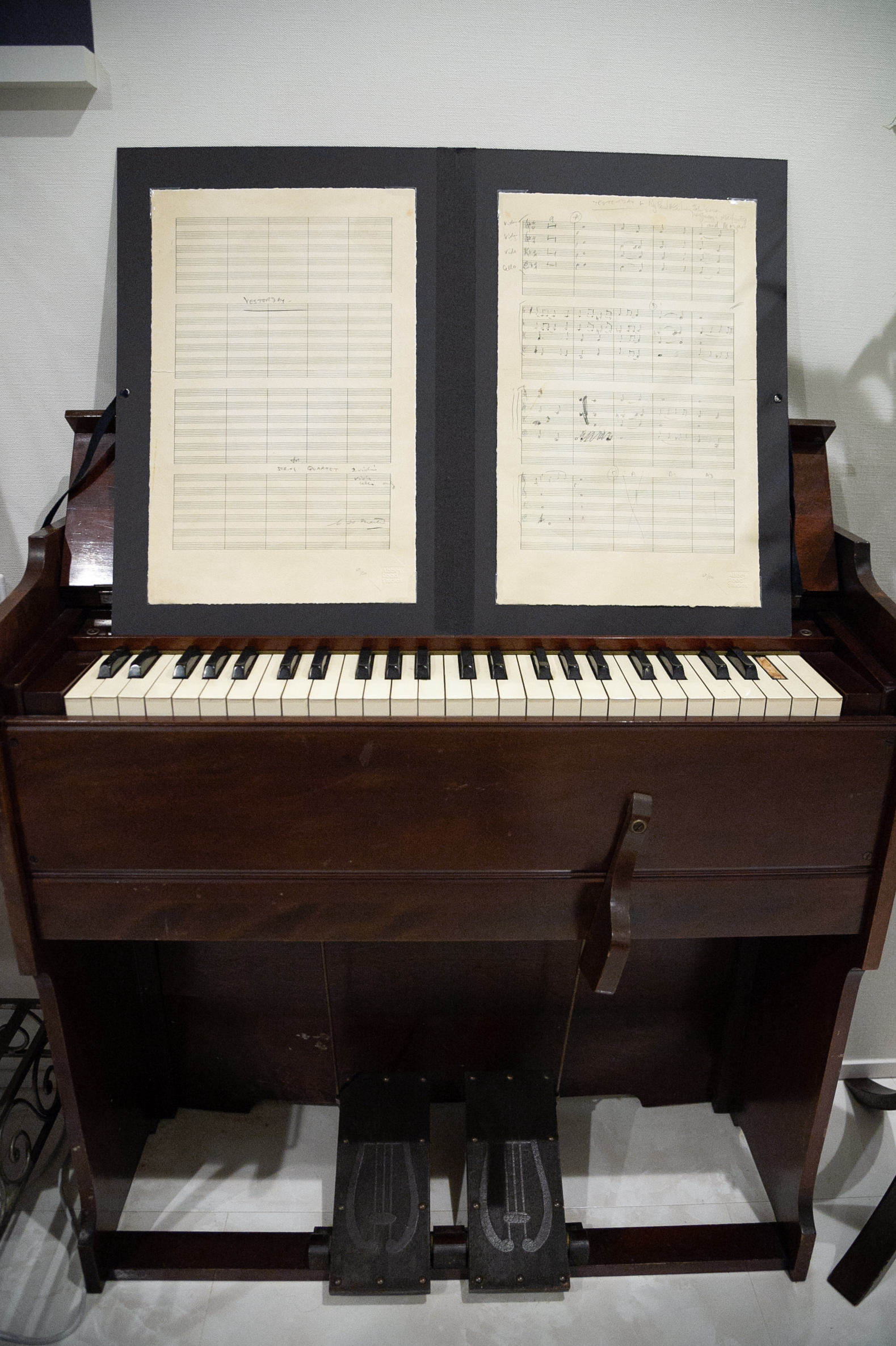 アンティークのオルガンの上にはビートルズ「Yesterday」の譜面(レプリカ)も