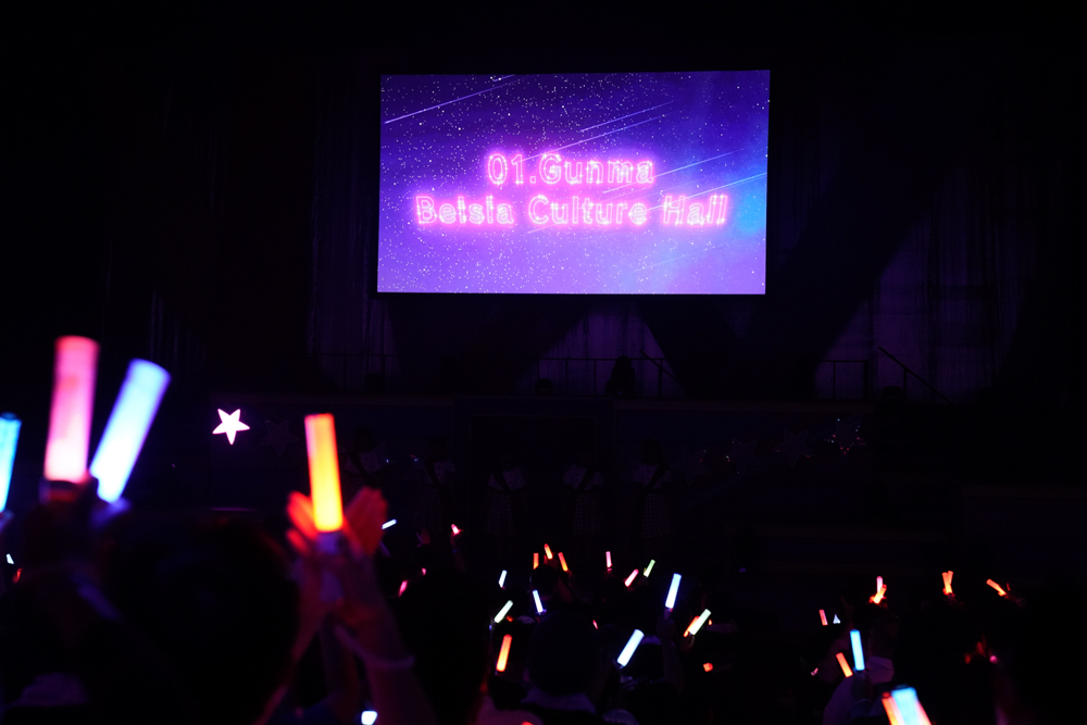 スタートを見事に決めてのMCタイムでは、深々と一礼をしてから嬉しそうに客席を見渡し、ついに辿り着いたファンの前でのライブの感動と会場と配信で集まってくれたファンへの感謝を語る。そして群馬で食べた地元名物トークや、スクールアイドルの定番である各メンバーの名セリフを絡めた自己紹介パフォーマンスを披露。