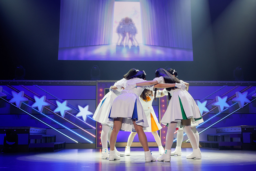 開演間近を告げる「Dancing Heart La-Pa-Pa-Pa!」のメロディに合わせて、満員のファンが振るコンサートライトの輝きが場内に満ちていく。そしてスクリーンには夜空を駆ける星と共にメンバー紹介ビジュアルとアニメの名場面が映し出され、その都度大きな拍手が場内に響き渡る。