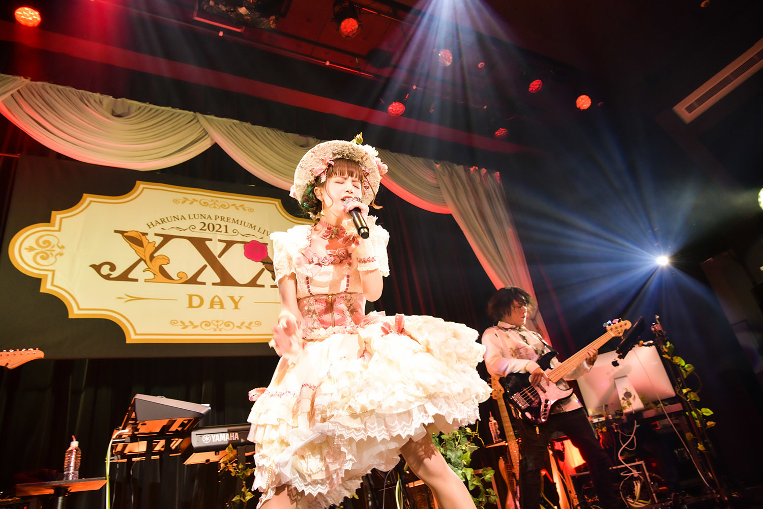 2012年5月のデビューから、数多くのアニメ主題歌を担当してきたアニソンアーティスト、春奈るなが池袋にあるミクサライブ東京でワンマンライブ『HARUNA LUNA PREMIUM LIVE 2021 “XXX”』を開催した。10月11日に30歳の誕生日を迎えたばかり、そして本人もファンも待望していた約1年9ヶ月ぶりとなる有観客公演で、彼女はどのような世界を見せたのか。全編バンドセットで行われた『-day-』『-night-』という副題どおり昼・夜2公演から『-day-』公演の模様をレポートでお届けする。