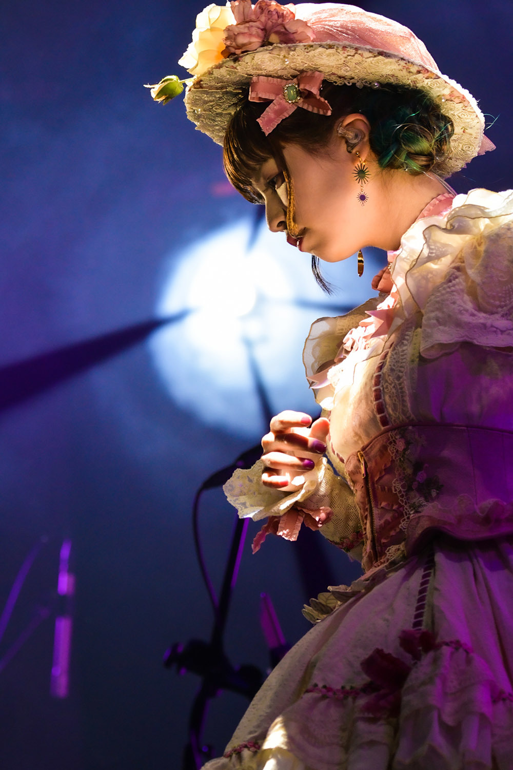 MCで一息つくと、生配信について「ここに来られなかった“るな充”も観てくれているの、心をみんなで一つにして楽しんでいきましょう」と改めて呼びかけた。そして「みんなにこれを見てもらいたかった」と今回の衣装について紹介。今回はパニエではなくクリノリンという鳥かごのような骨組みでスカートの広がりを作っているため、春奈の動きに合わせてスカートの独特な揺れ方が楽しめる。春奈が「クラゲを背負って」と表現したこのスカートの揺れ方も楽しんでほしいとアピールした。