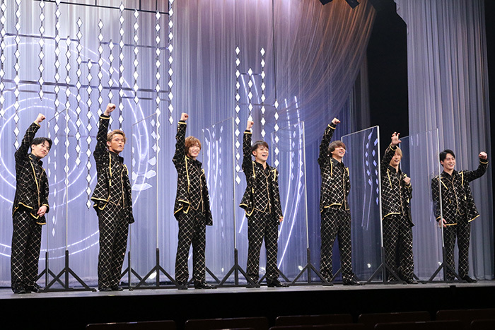 最後に、リーダーの宮近からの「僕らのパフォーマンスやこの舞台をいろんな方に観ていただきたいという気持ちを持っていました。無事に京都公演を終え、東京公演のあとに名古屋や広島公演もあります。それが叶ったのはファンの皆さんの力。まず、再演が当たり前ではないので。何回も続けられるのも、ファンの皆さんのサポートと愛があったからだと思います。その感謝を、口だけではなく舞台上のパフォーマンスでも返せたらなと。最後まで恩返しできるように頑張りたいと思います!」というメッセージで締めくくられた。