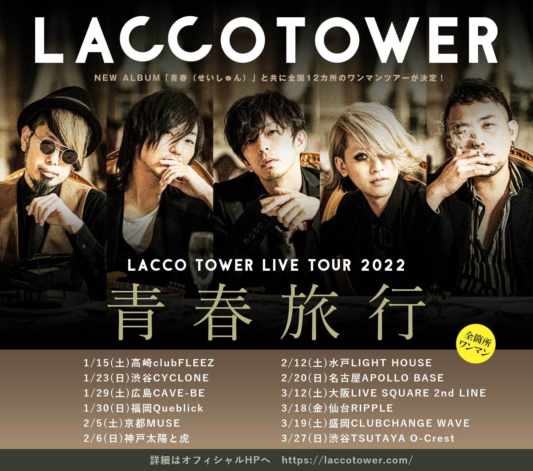 2022年に結成20周年を迎えるLACCO TOWERが、12月8日(水)に発売されるメジャー6枚目のニューアルバム『青春』のレコ発全国ワンマンツアー『青春旅行』の開催を発表した。