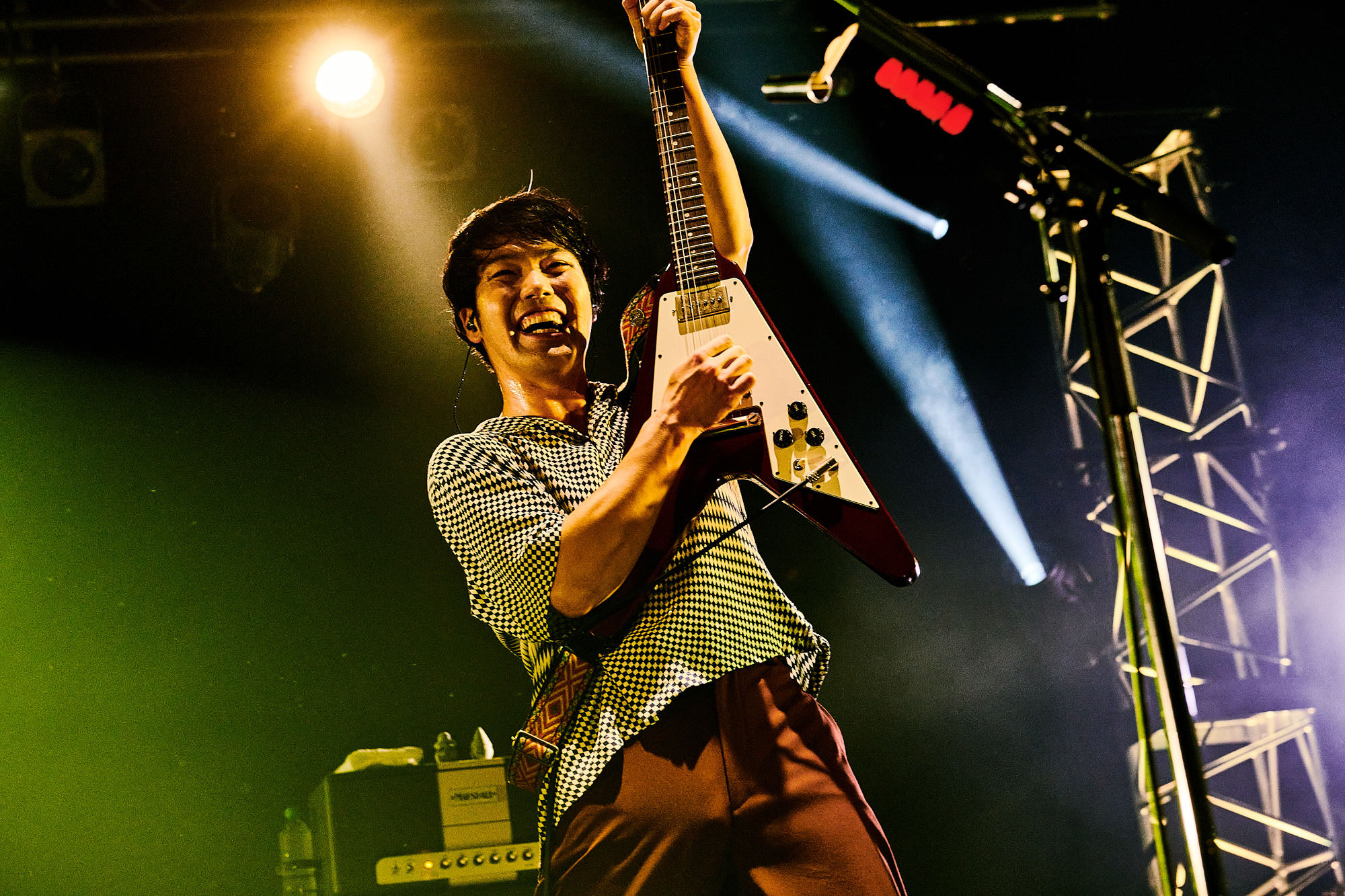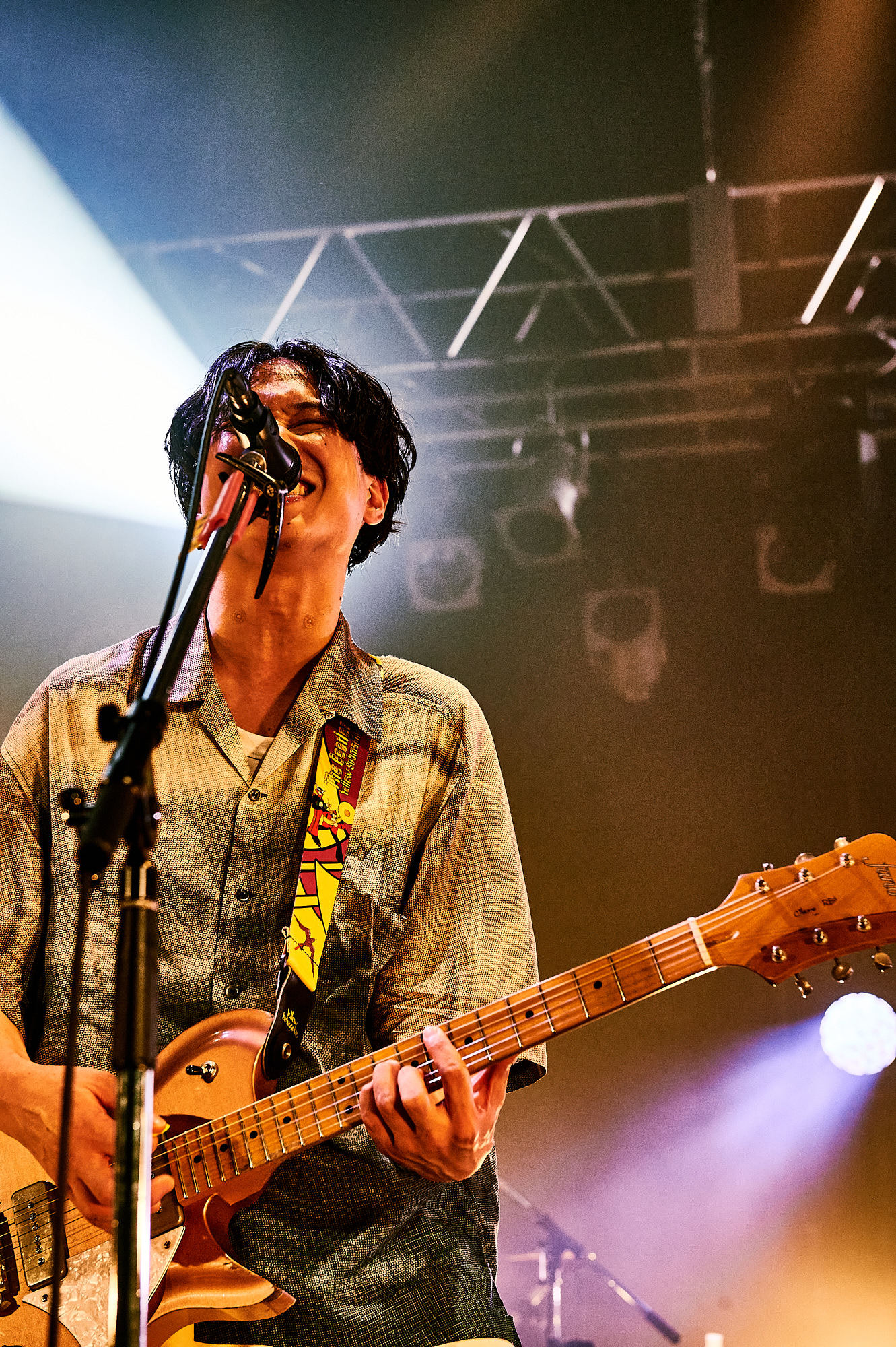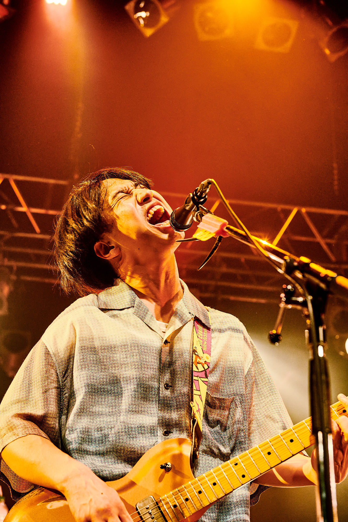 その2曲で、健気に無言のままだが(そう、本当に「健気」という言い方がぴったりだった)、身体を使ってのリアクションが一層大きくなったオーディエンスに、はっとりが「心の中で、サビ前のあれを叫んでほしいんですが! いけますか?」と求めてからの「ワンドリンク別」。「いい恋してるかい?」という問いかけから歌に入った「レモンパイ」。どちらの曲も、誰も声を出していないのに、それぞれが歌う声がきこえるみたいな錯覚に陥る、そんな幸せな空気に包まれる。