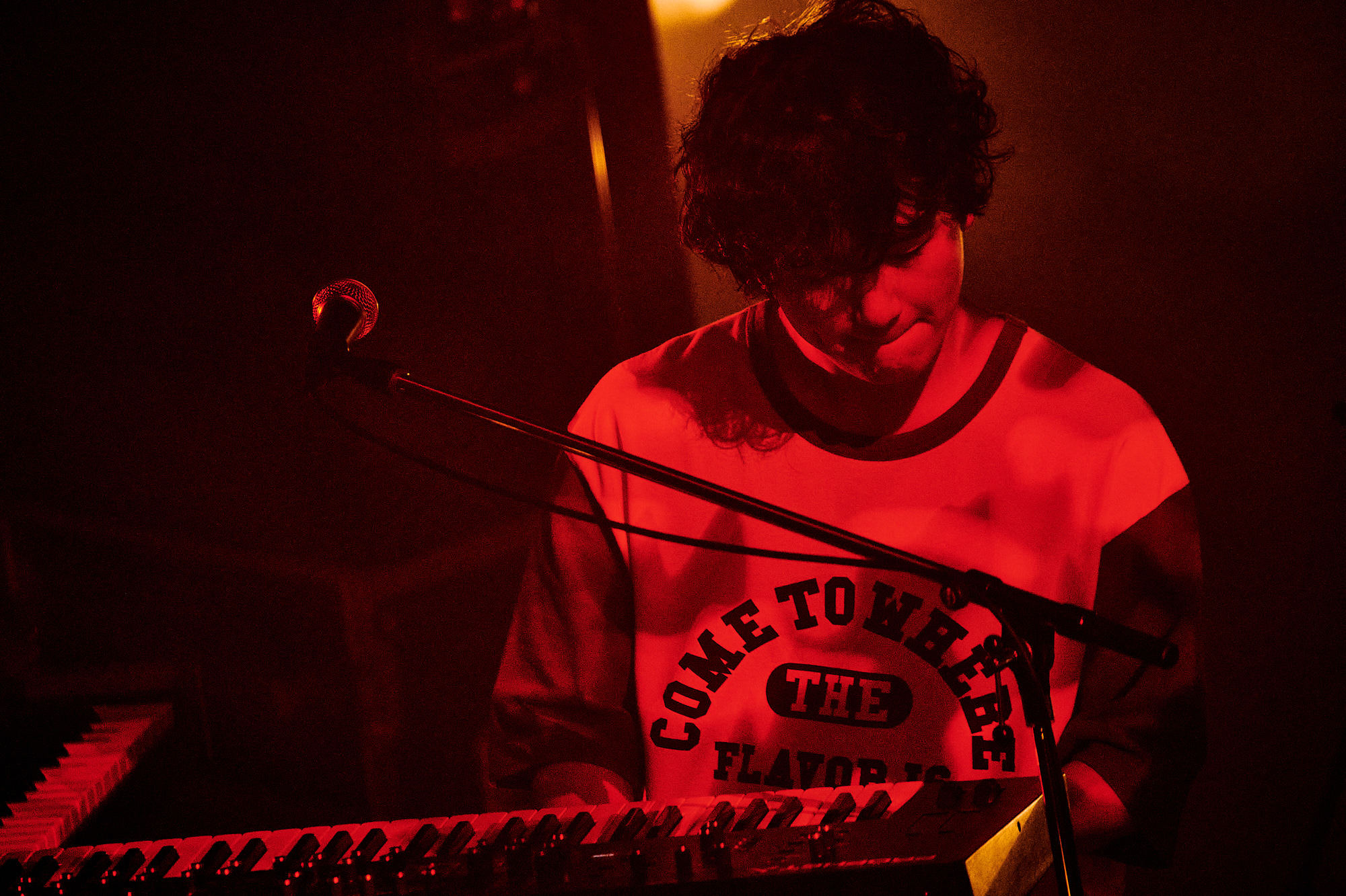 MCをはさんで、「恋人ごっこ」「two much pain」の、言わば「じっくり浸らせる曲」ゾーンへ。続く「幸せやそれに似たもの」では、長谷川大喜(Key/Cho)→はっとり→田辺由明(Gt/Cho)が、順にソロをとる。