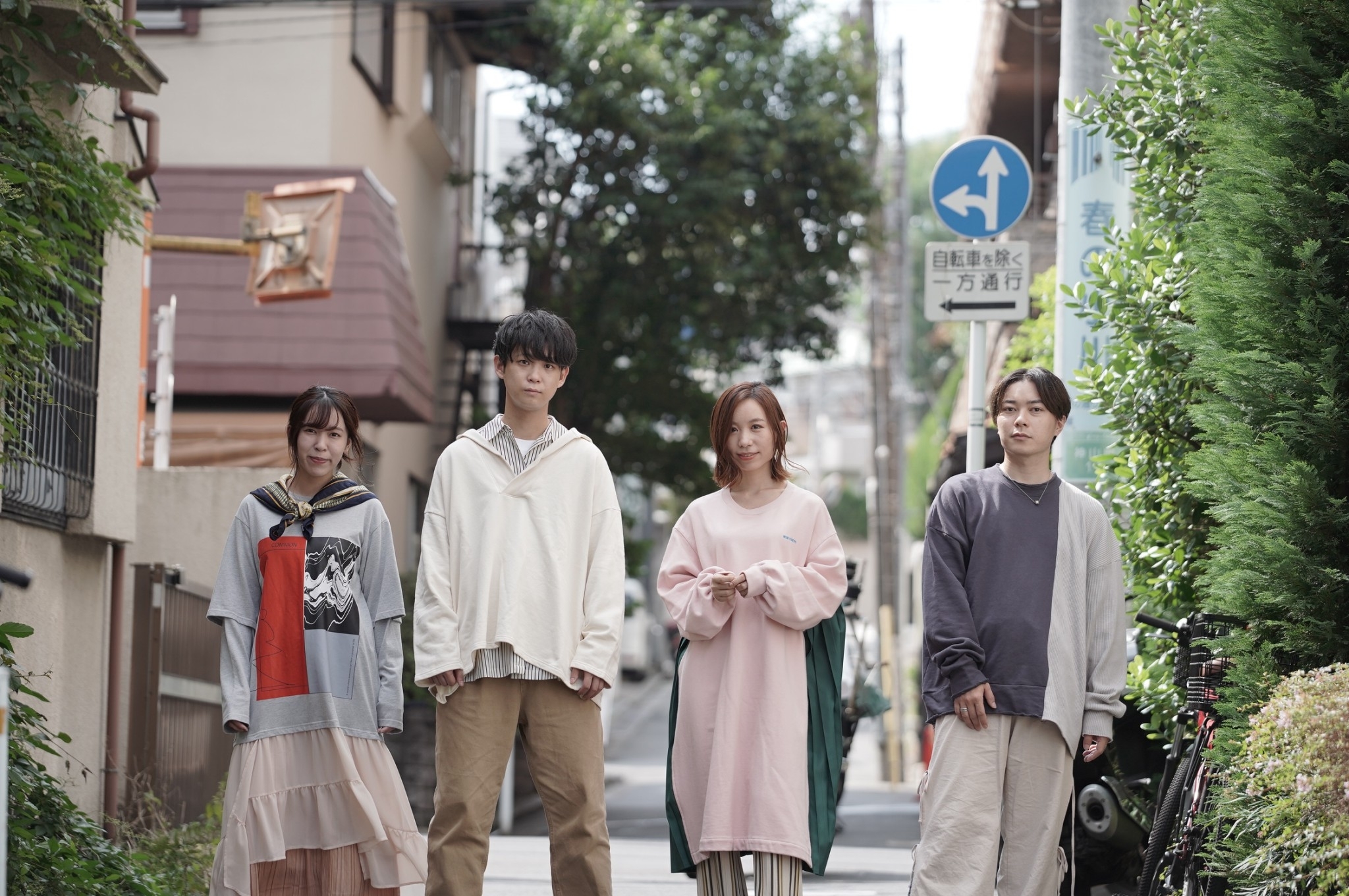佐竹惇(Vo&G):メンバー4人だけのMVは、今回が初めてなんですよ。今までは、せつない曲やノスタルジックな楽曲をリード曲にして、MVにすることが多かったんで、女優さんや俳優さんを起用したほうが映像的に映えるというスタンスやったんですけど、今回は「街角のラプソディ」という楽曲が、こういう状況の中でみんなに前を向いてほしいという、喜びの明日へ向けての希望の歌になればいいなという曲なので、メンバー4人が一番ハッピーな映像をお届けできるのがベストなんじゃないかな?という考えでMVを作りました。こんなポップに撮ってもらうことがなかったので、ぎこちなかったりもすると思うんですけど(笑)。
