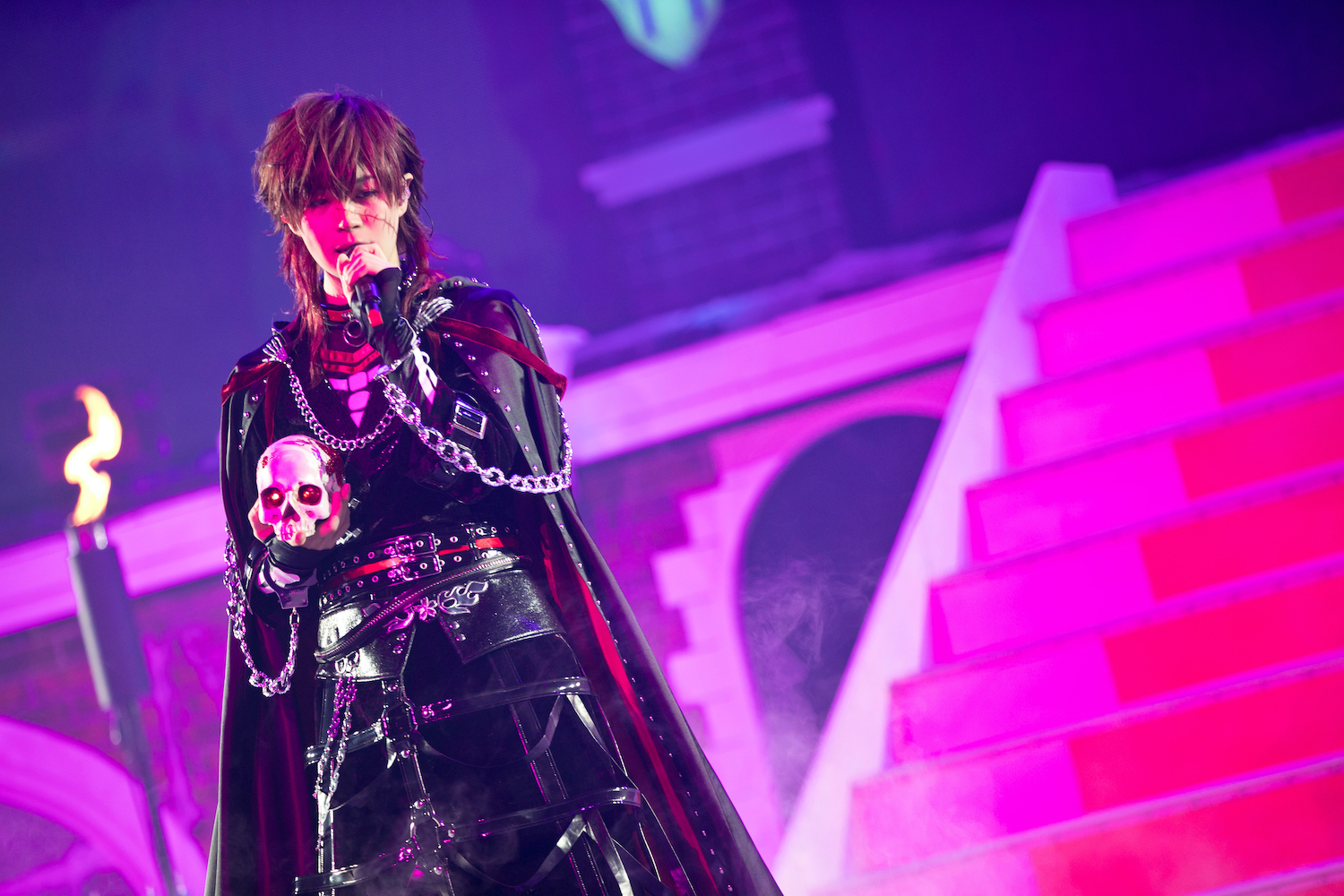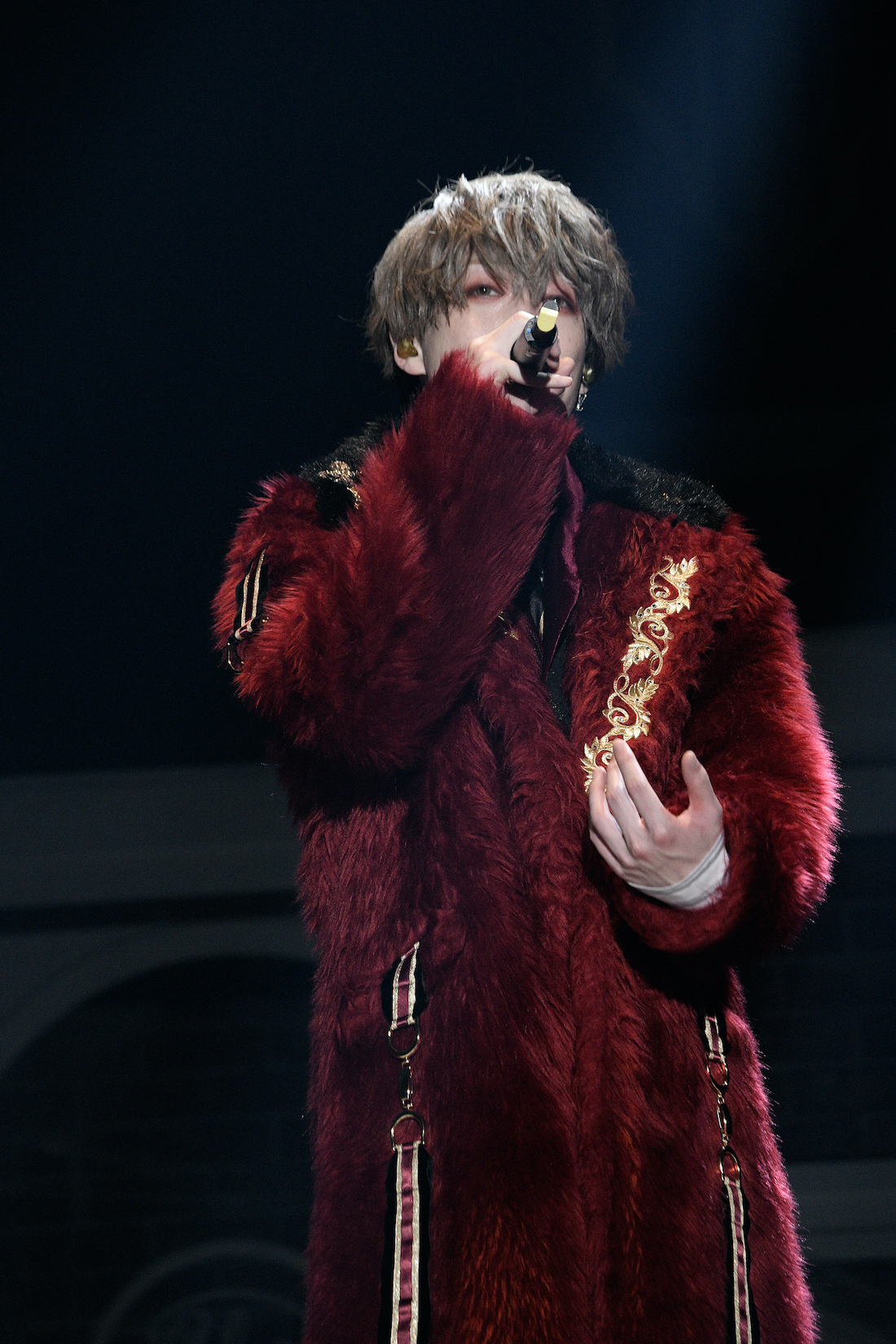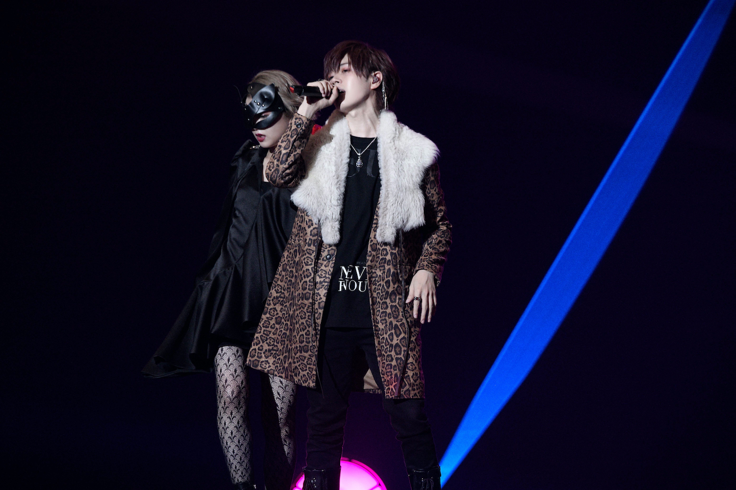 開演前に浦島坂田船の公式ツイッターにも登場したパンプキンマンの笑い声が響き、ハロウィンライブの幕開けに相応しい「Bad Monster」へ。イラストレーター・MACCOが描き下ろしたライブのメインビジュアルそのままの衣装&ヘアメイクで姿を現し、艶っぽい歌声をつないでいく4人。あやしく揺れるトーチの炎、マスク&黒マントダンサーの躍動、<“コッチ”に来いよ>というキラーフレーズが相乗効果を生む「HORRORISM」、この日のテーマが重なる「ヴァンパイア」にしても然り、彼らの妖力、あまりに強すぎやしないか。
