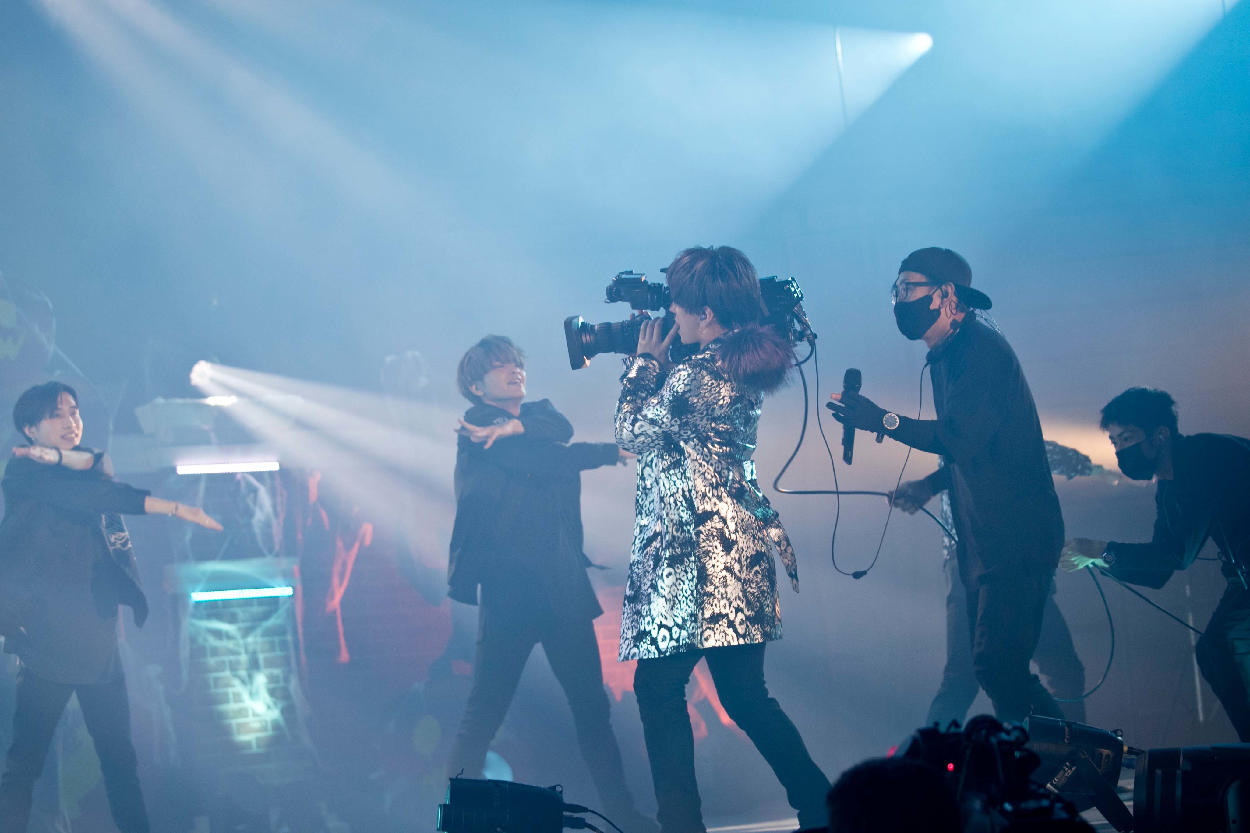 モニターの前にいるcrewのコスプレ姿を想像&妄想して盛り上がったMCを経て、無観客配信ライブならでは、仮装ダンサーとともに客席へと繰り出した「SPOOKY MAGICAL NIGHT」では、大胆にコミカルにパフォーマンス。まさに“楽しまないと損”だ。