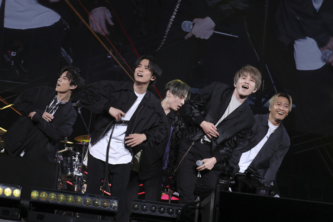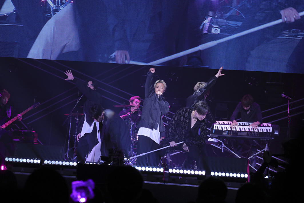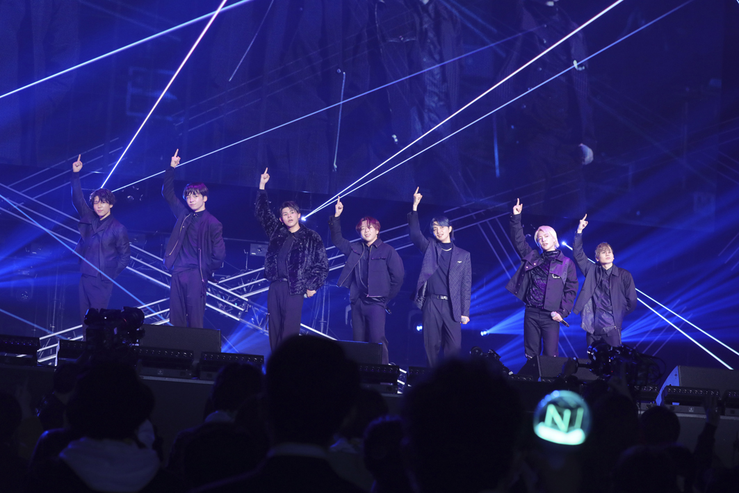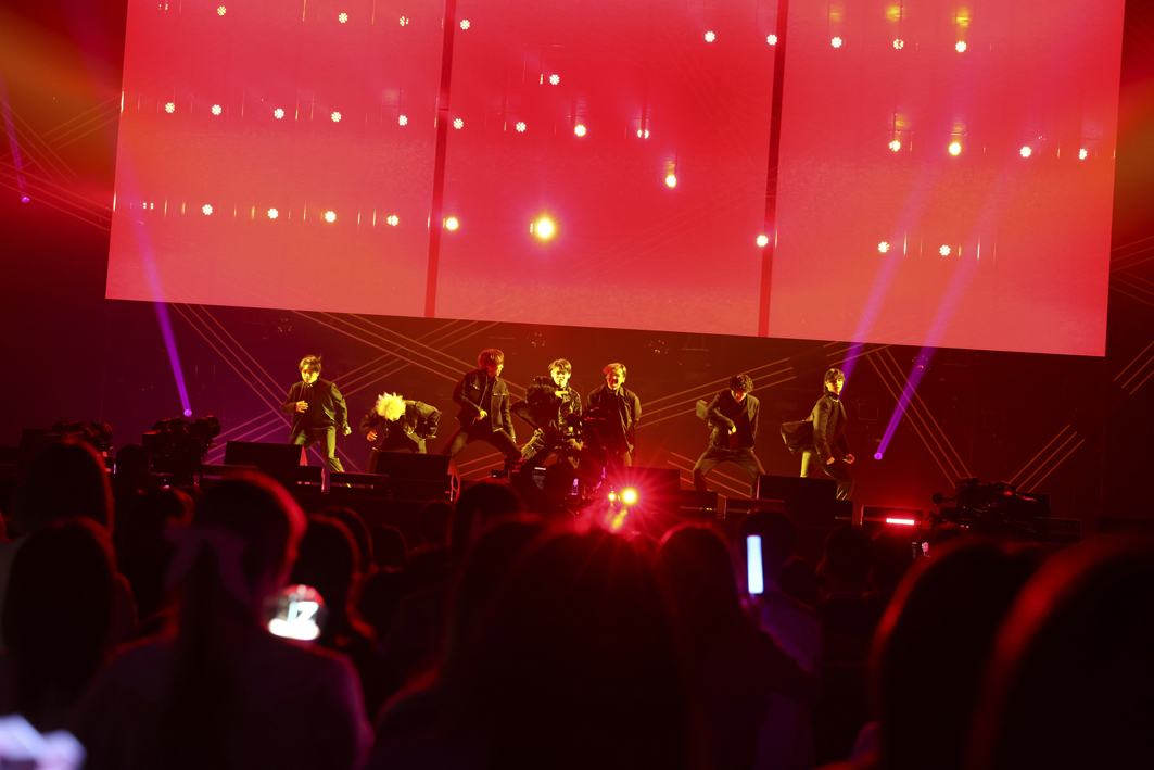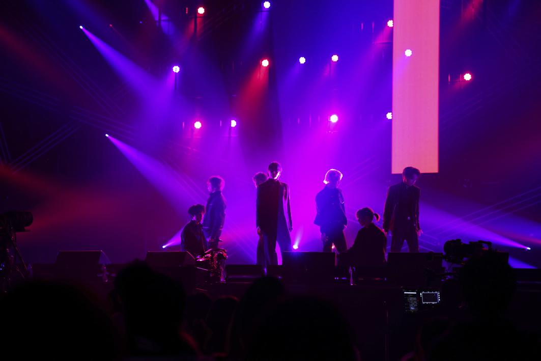 SEが鳴り響く中、ブラック・スーツを身にまとった7人が勢いよくステージに登場。オープニング曲は、11月3日にリリースしたばかりのファースト・シングル「Gifted」。一糸乱れぬフォーメーションで力強いダンスとヴォーカルを見せつけ場内を圧倒。BE:FIRSTはSKY-HIが主催するボーイズ・グループ・オーディションから生まれた7人組。デビューしたばかりの彼らにとって、横浜アリーナはとてつもなく大きな会場。この舞台に立てたことに全員感無量。ラストはオーディションの最終審査で歌い踊った課題曲であり、彼らのプレデビュー曲でもある「Shining One」で締める。全てのパフォーマンスが終わると、7人はステージ横一線に並び、右腕を大きく天に向けて静止。頂上を目指す彼らの強い意思を感じさせた。