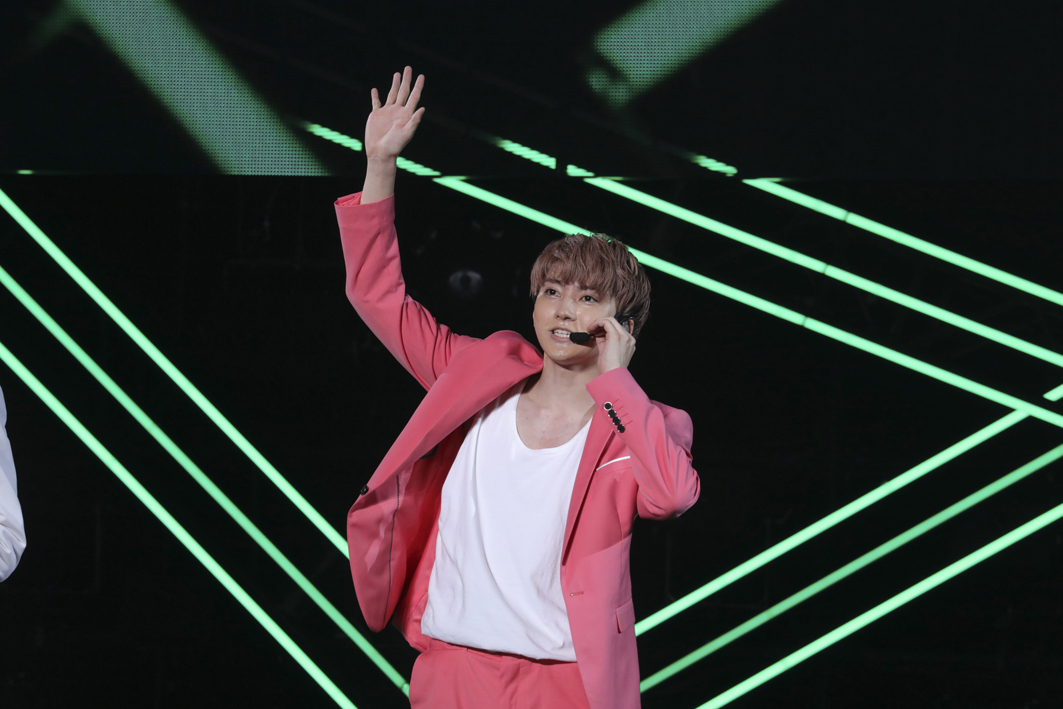 圧巻は、「Winter Show」〜「ネバギバDANCE」〜「Burn!」の鉄板ナンバーをメドレー仕様でノンストップで連打。タカシのリードヴォーカルに合わせ4人のメンバーがキレッキレのダンスを見せつける。ユーキはバク転も披露し、「Burn!」では両腕を胸の前にクロスさせるボディ・アクションをオーディエンスに伝授し、みんなの参加を促す。こうなると場内はお祭りのような盛り上がり。ラストは11月10日にリリースされる新アルバムに収められる「Dance Dance Dancing!」で会場を興奮の坩堝に叩き込み、35分のステージを“超特急”の速さで駆け抜けた。