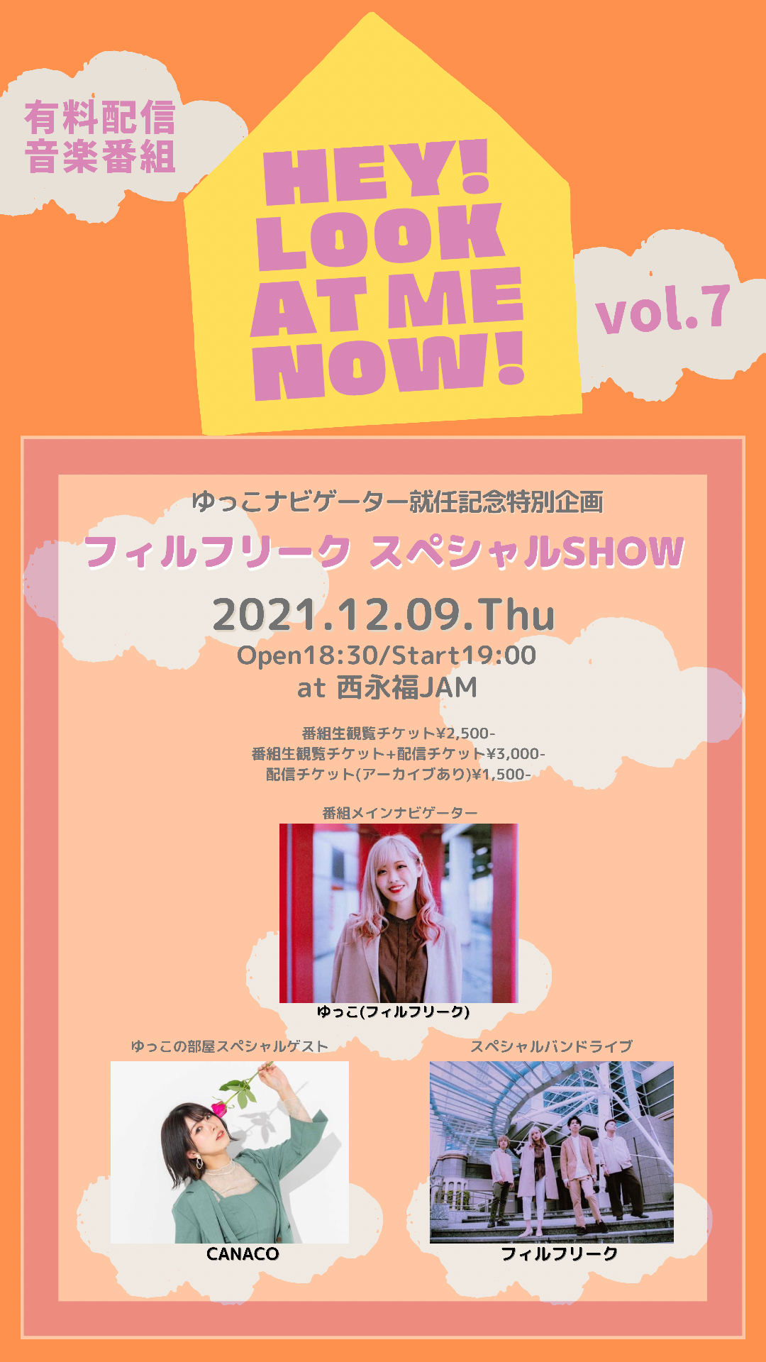 音楽配信番組『HEY! LOOK AT ME NOW!』(読み方:ヘイ! ルック・アット・ミー・ナウ!)の第7回目が12月9日(木)に西永福JAMにて開催される。