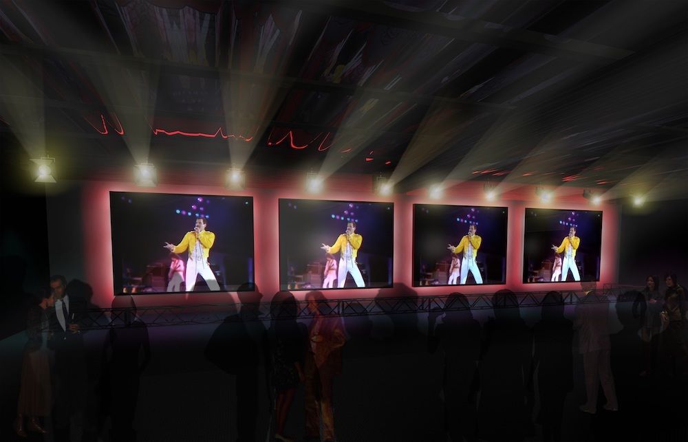 7階には150インチの4面マルチスクリーンによる「Immersion Theater(イマージョン シアター)」を設置。ここでは映像に特別な演出を連動させ、クイーンのライブ空間に入り込んだかのような体験ができる。上映するのは、1982年の西武スタジアム来日公演の様子。現在は一般的には見ることができない後半のハイライト・シーンがセレクトされており、最後にフレディが洒落っ気で被った野球帽にも注目してほしい。