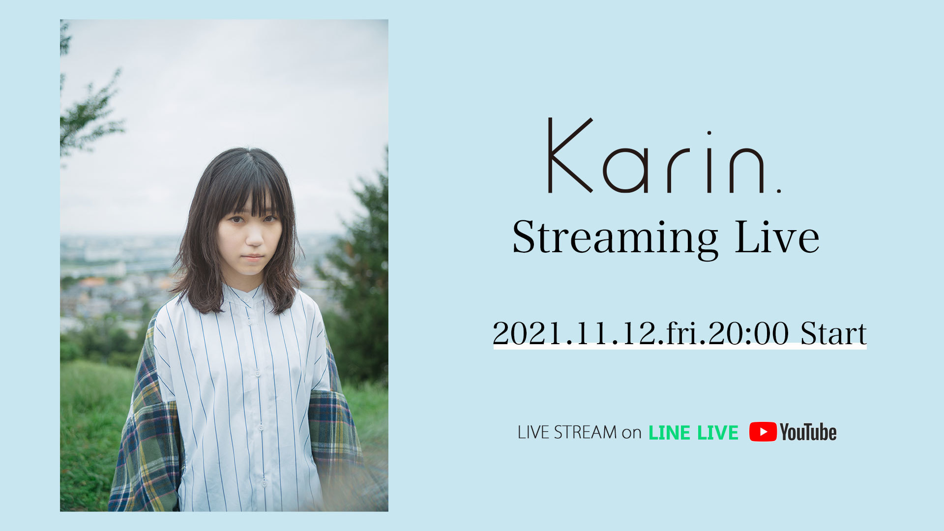 10月27日(水)に「二人なら – ep」を配信リリースしたKarin.が、11月12日(金)20:00よりYouTubeとLINE LIVEにてKarin. Streaming Liveを実施することが決定した。