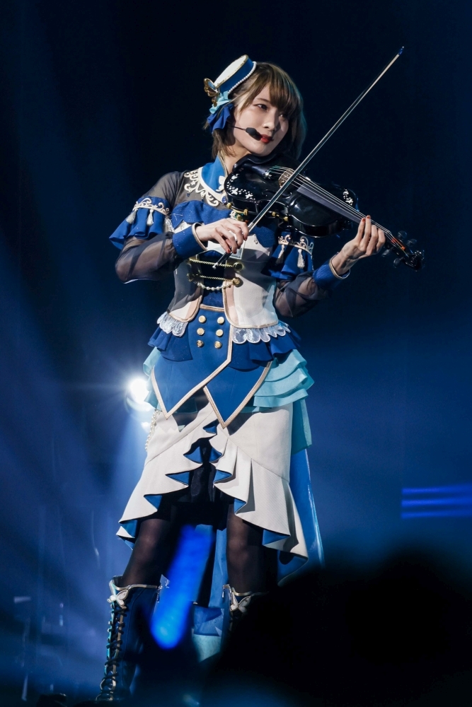 3曲続けて披露した「Sonorous」では、バイオリンのイントロからスタートということで、再びAyasaがスポットライトを浴びながら、その旋律を奏でていく。サビでは進藤と向かいながら、ボーカルの声に寄り添うようにユニゾンし、「バイオリン、八潮瑠唯」と紹介されると、たおやかなソロパートを聞かせてくれた。