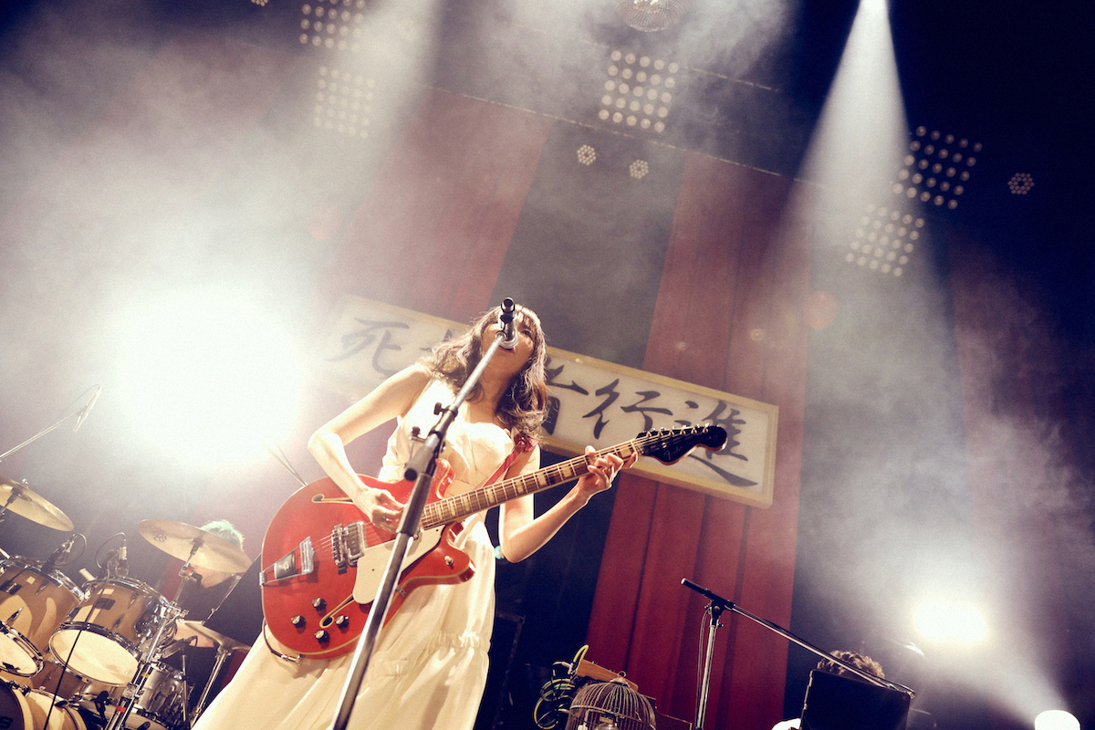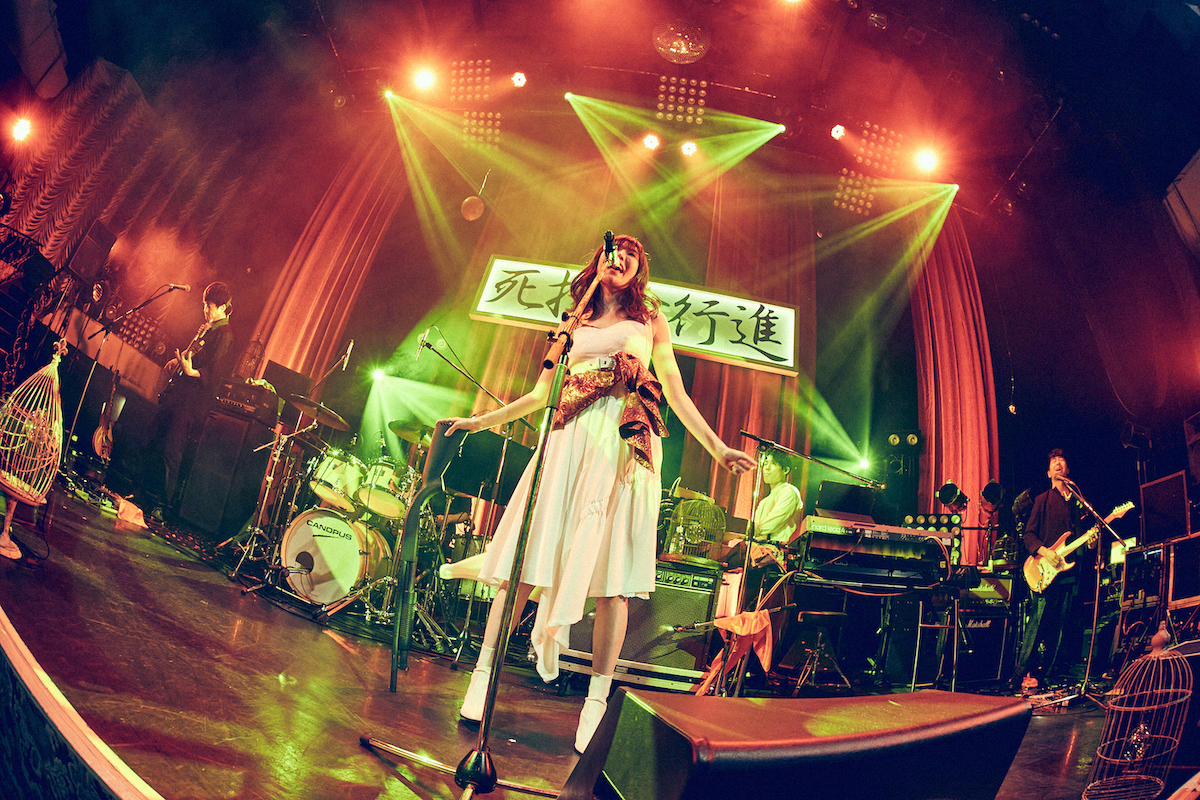 この日のライブは、今年7月に発表された最新アルバム『死に損ないのパレード』を軸にしたもので、裏テーマとして黒木が考えていたものが「百鬼夜行」だったとのこと。様々な妖怪が夜中に列をなして歩くように、多種多様な悩みや生きにくさを抱えていることを隠し、普段は人間の振りをしている“妖怪”達の集会であり、パレードといったところ。タイトル曲の「死に損ないのパレード」では、“行灯”と名付けられた炎の形を模したサイリウムをオーディエンスが左右に振ると、黒木も「すっごいきれい! 怪しい!」と、かなり楽しそうだ。