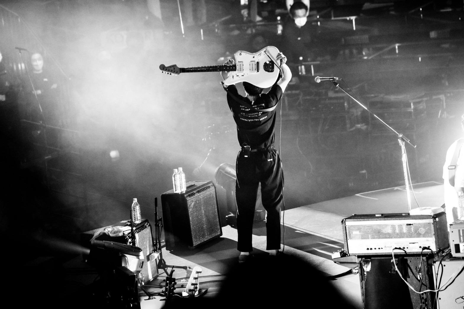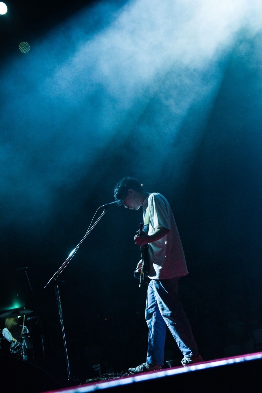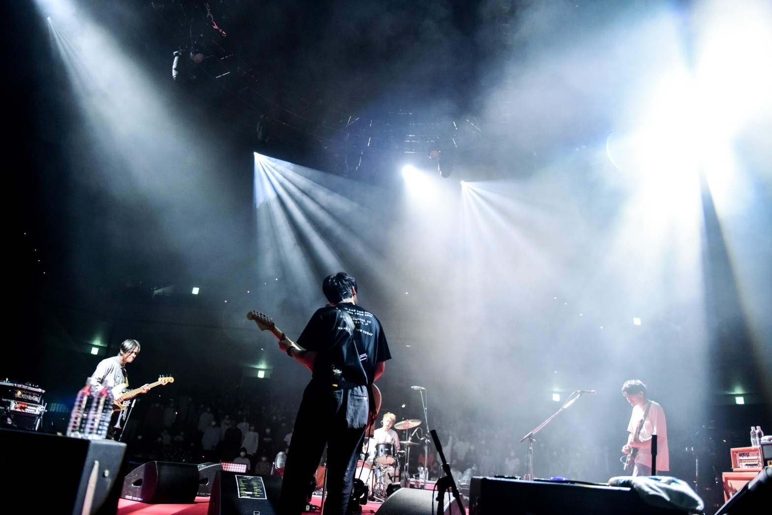 「俺らなりのラブソングです」と始まった荒々しくもセンチな「ふたり」から真っ直ぐな表現が胸を打つ「ラブソング」、アルバムのラストソングである「東京より愛をこめて」と愛を届ける楽曲が続いた後は、アップテンポな「トーキョーナイトダイブ」が会場の空気をガラリと変え、観客が拳を突き上げ体を揺らす。「オリオン」、「春一番」と季節感ある曲が続き、それぞれが風景を頭に描き浮かべる中、「こっから後半戦って感じで。大丈夫? もうちょっと満喫する?」と横山が短いMCを挟むと、ライブは早くも後半戦へ。